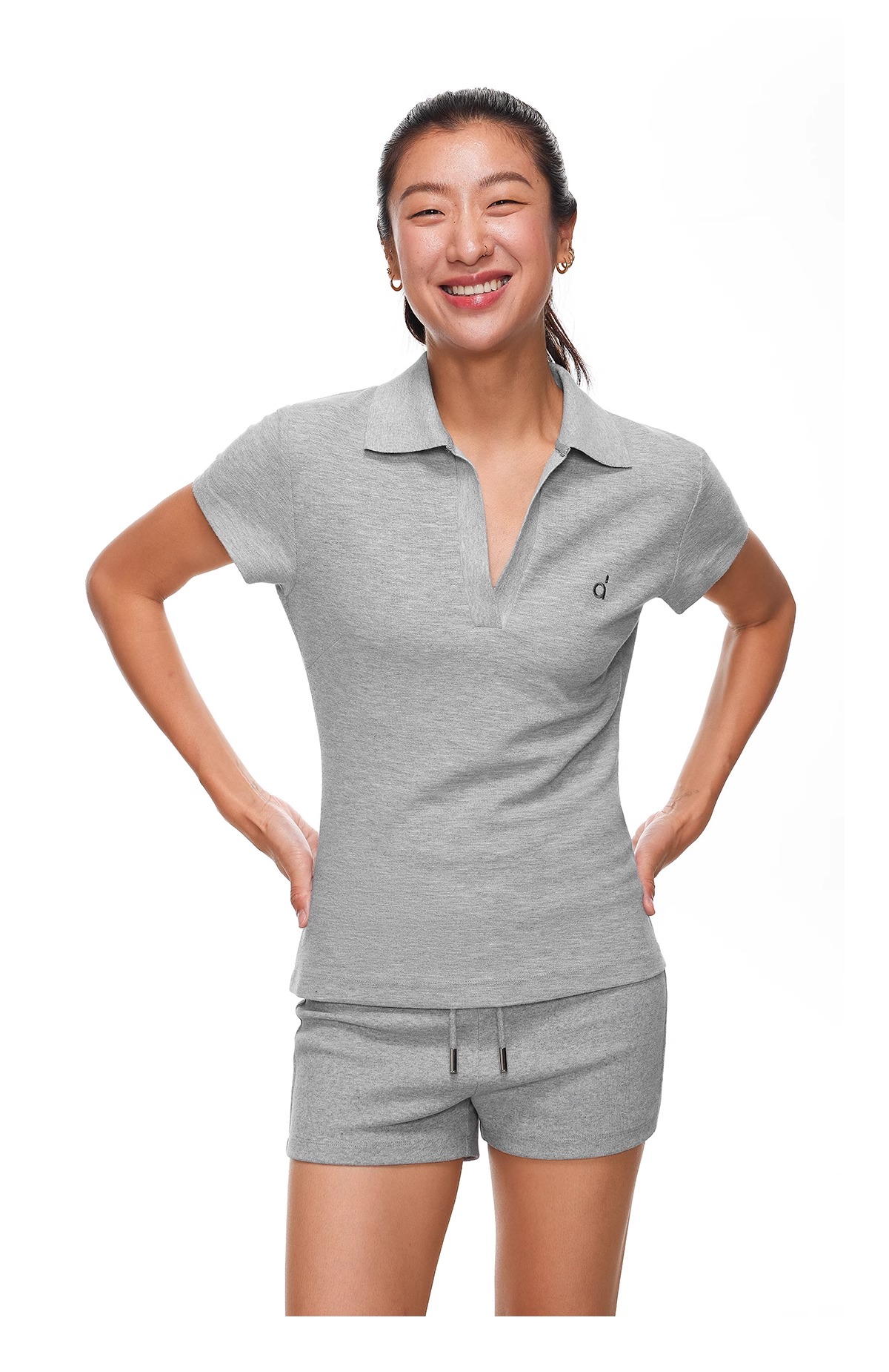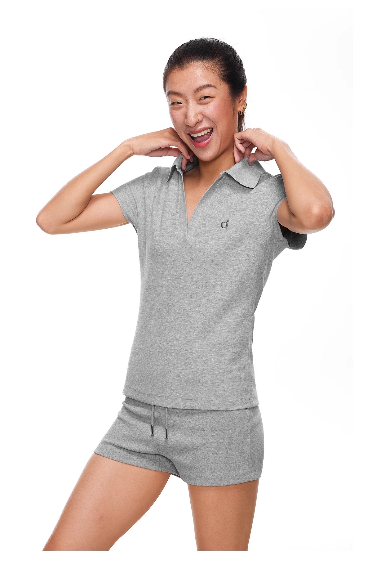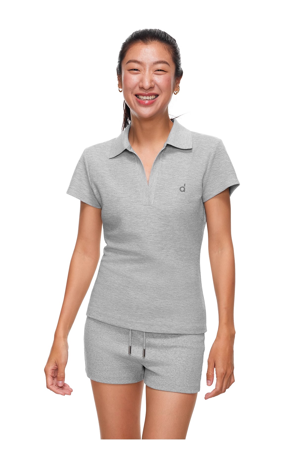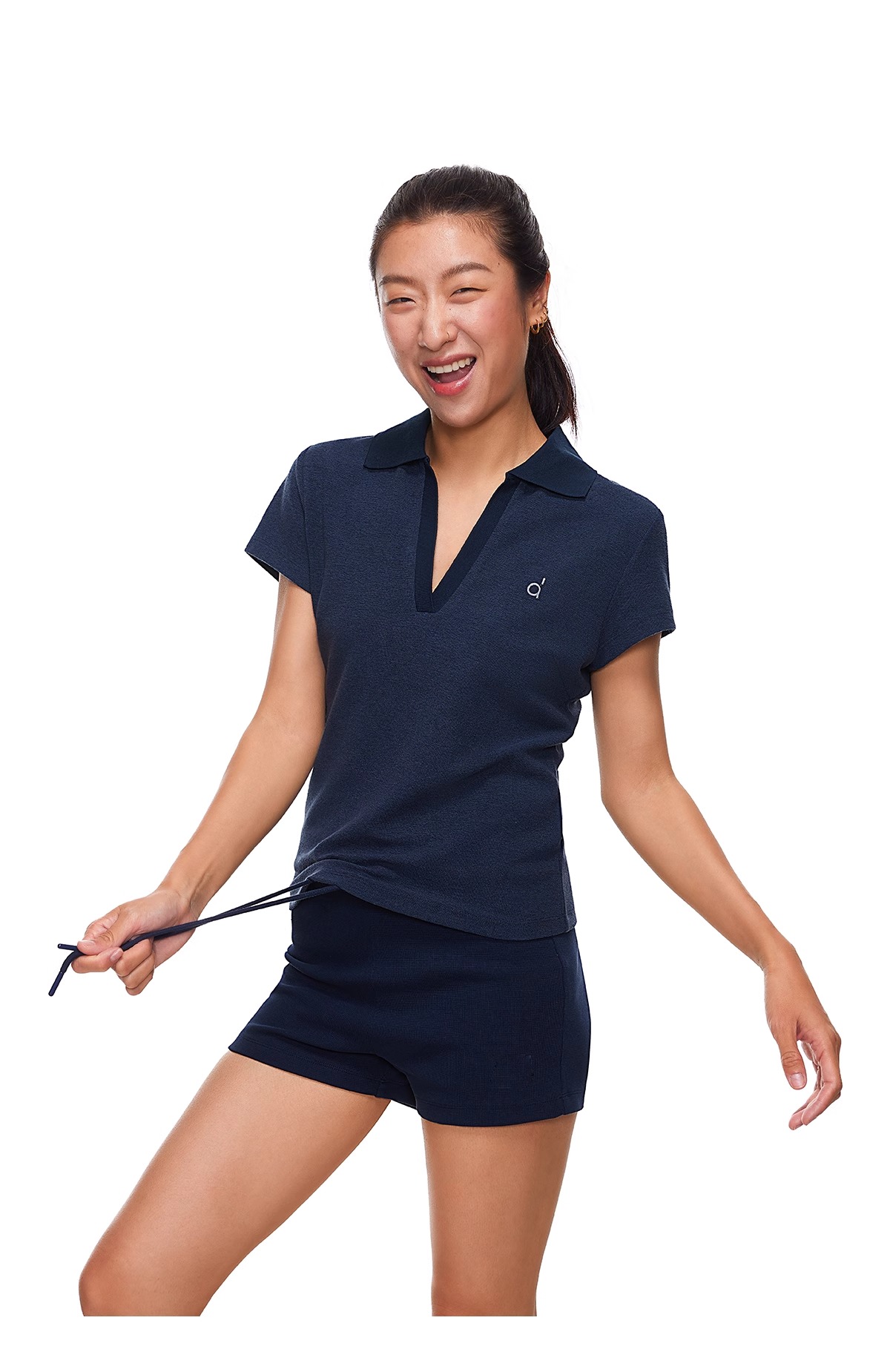 FDR旗舰店 V领正肩polo衫短袖t恤女修身翻领羽毛球运动上衣网球服