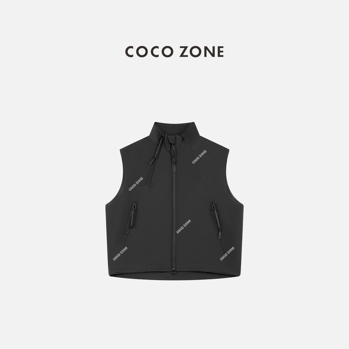 COCO ZONE 设计感口袋拉链百搭立领无袖马夹CC1D2677
