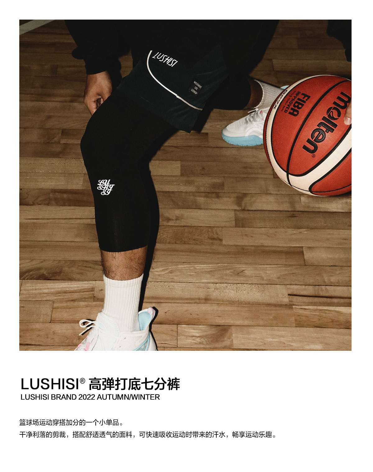 LUSHISI七分裤美式篮球运动九分打底裤高弹裤护膝加厚束脚紧身裤