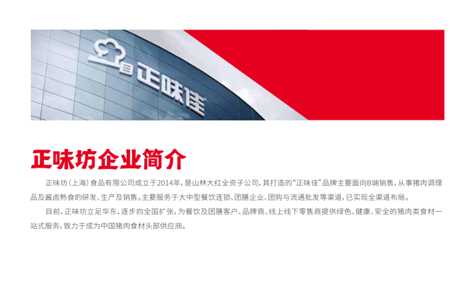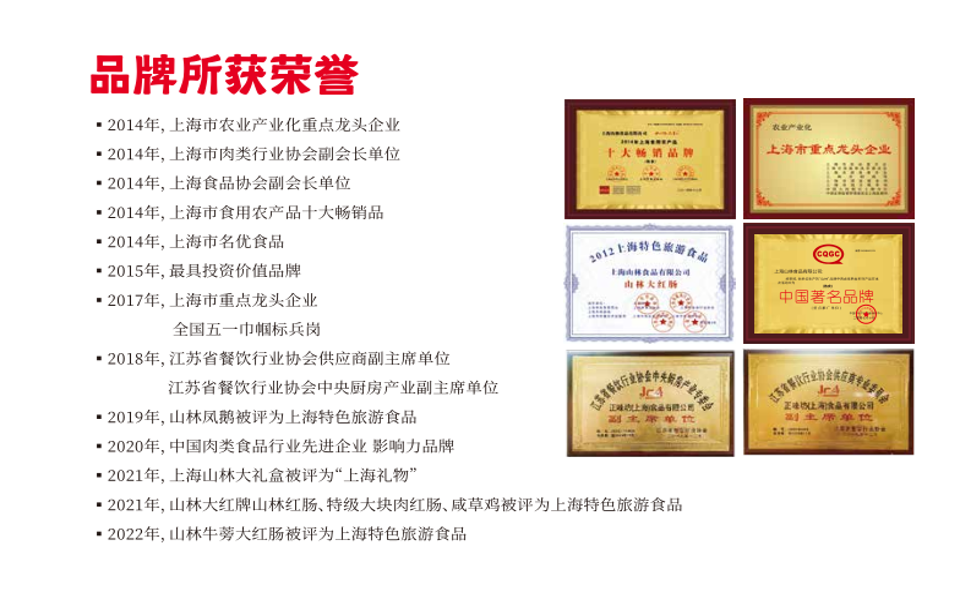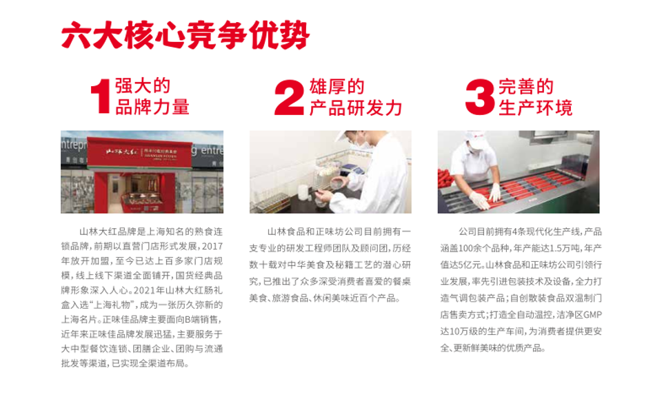 上海山林食品有限公司是上海老牌熟食企业,源于1949年,工厂坐落于上海金山工业园区,占地近5万多平方米,是上海规模最大、设备最先进、最具有影响力的餐桌食品专业公司之一。