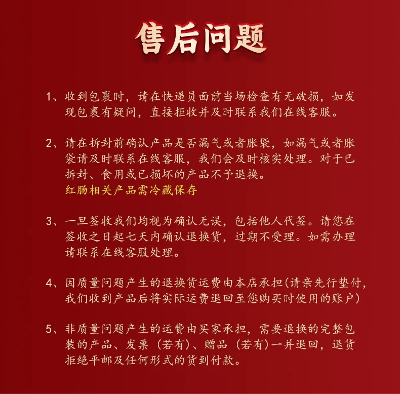 【售后标准】食品类不支持退换货,收到货