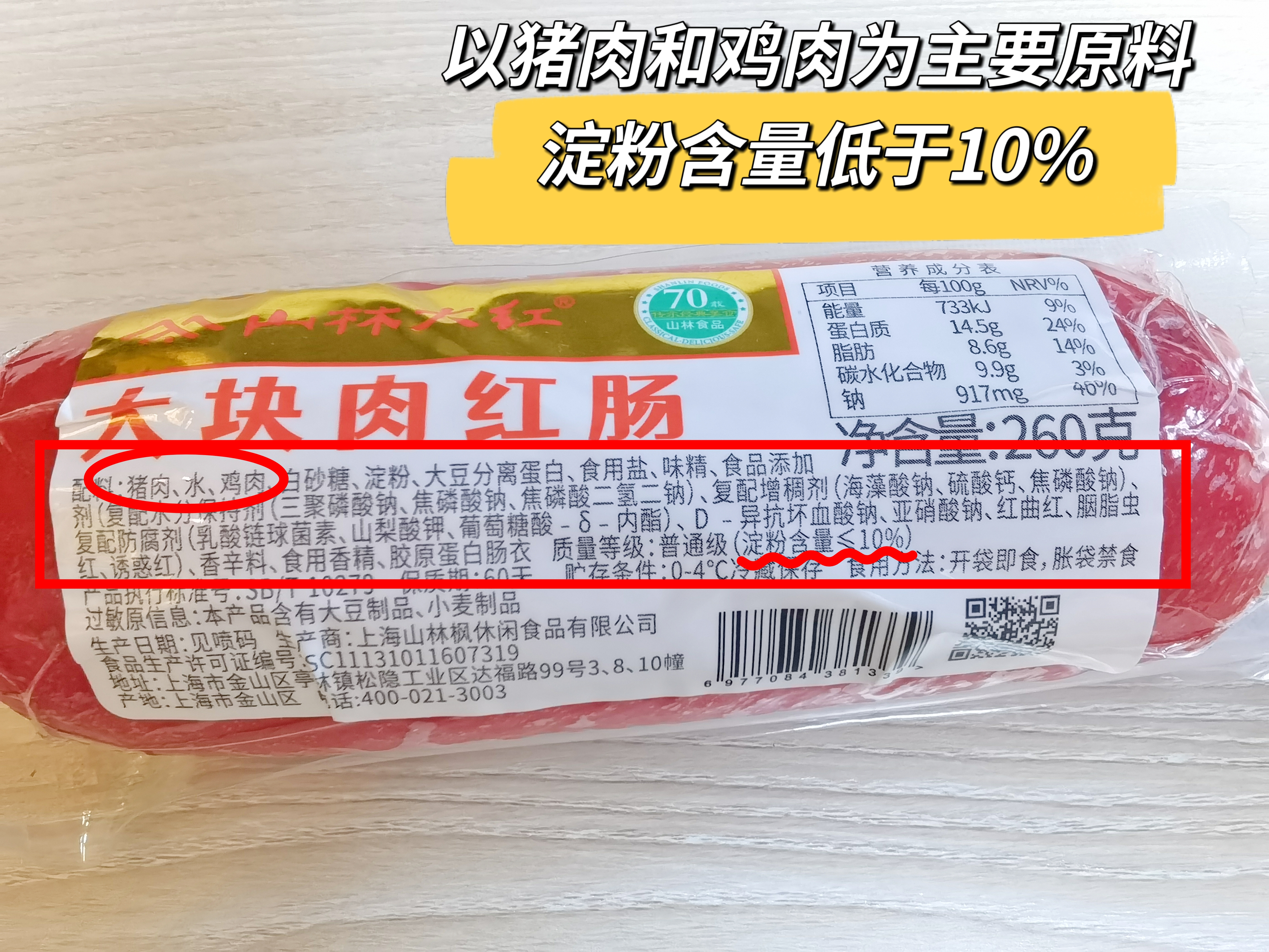 上海70年老字号【肉眼可见大块肉/淀粉含量≤10%-山林金标大块肉红肠】咸鲜适中,沪上800+门店💗新鲜猪肉制作!有嚼劲!肉质鲜嫩,有嚼劲,弹性好,营养丰富,香味浓郁❗