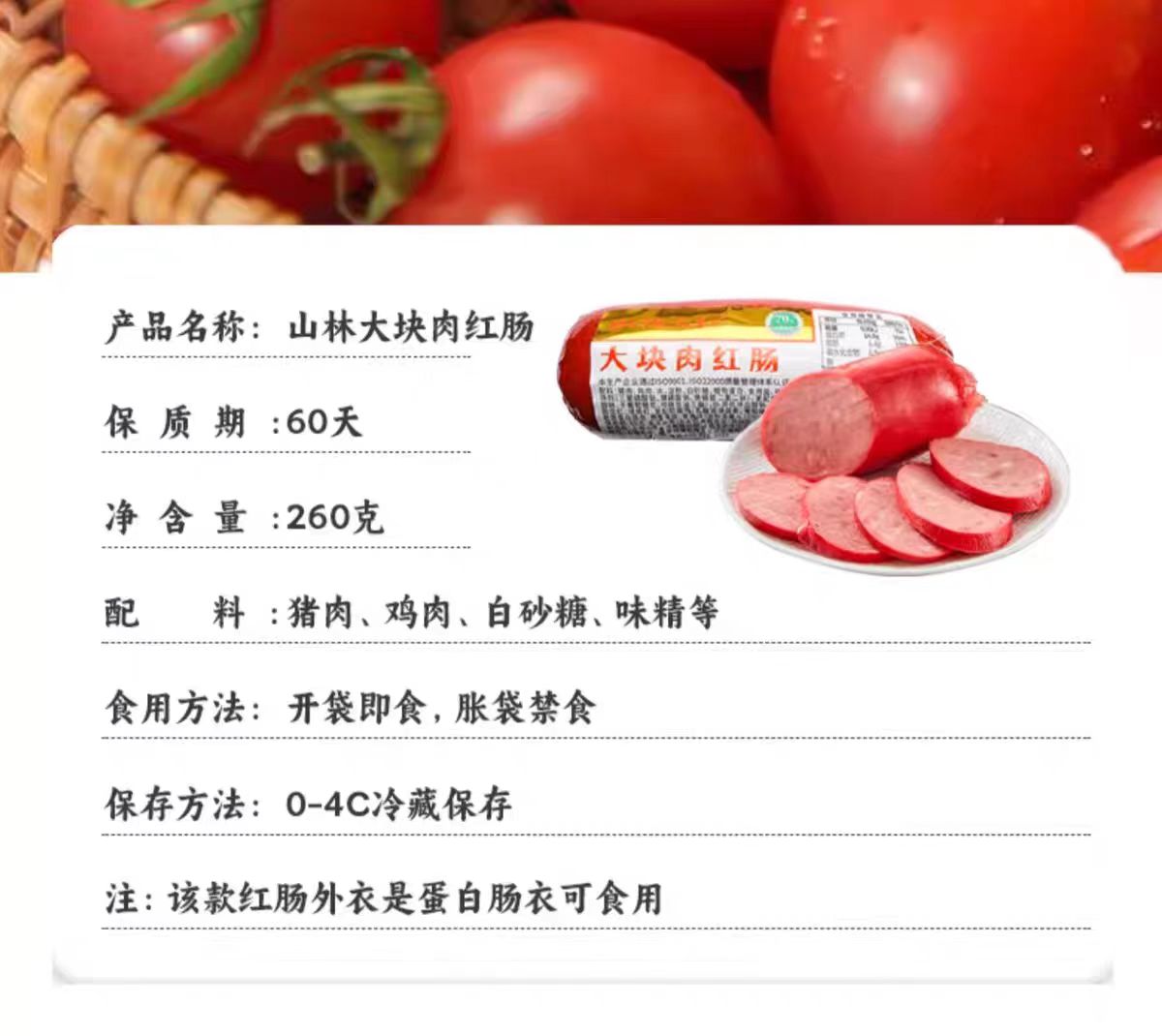 【产品名】山林大块肉红肠