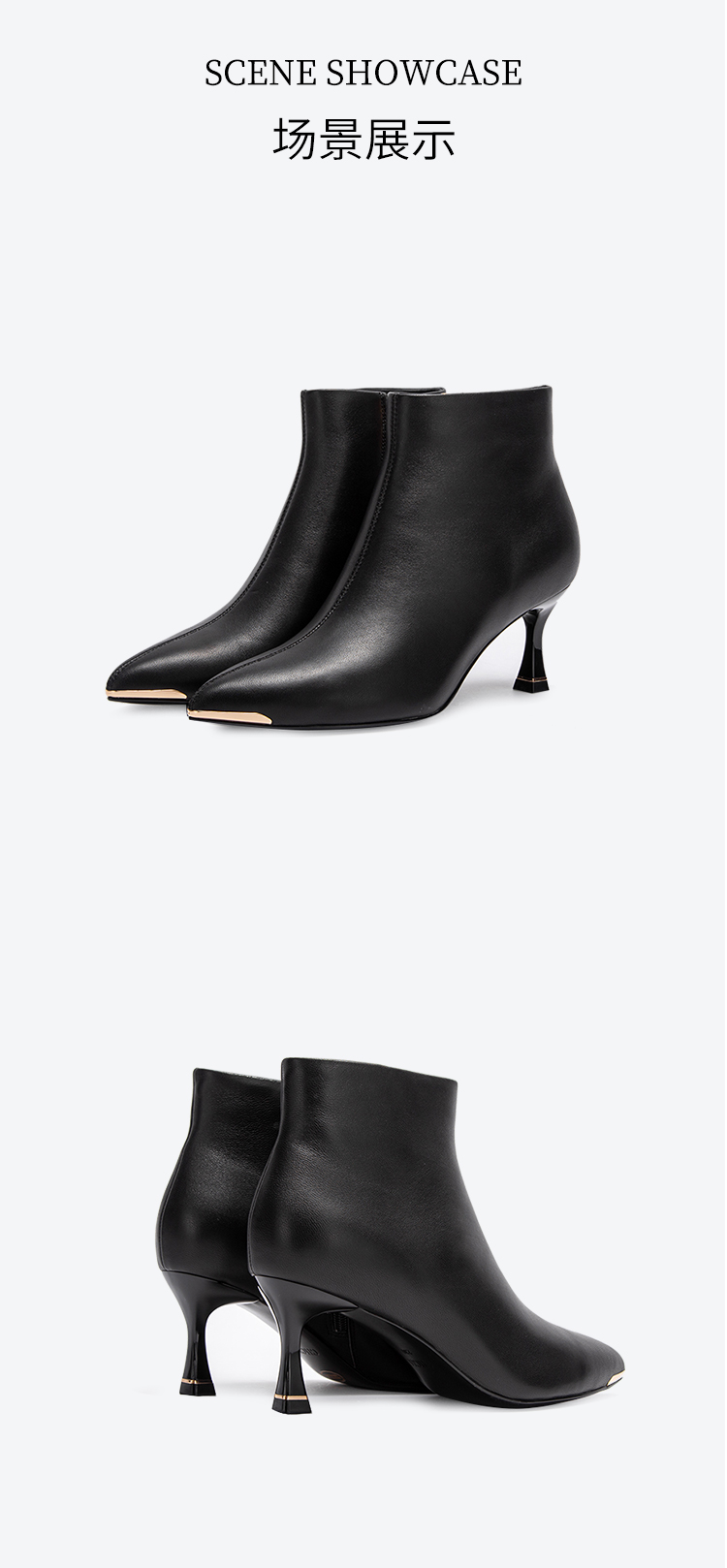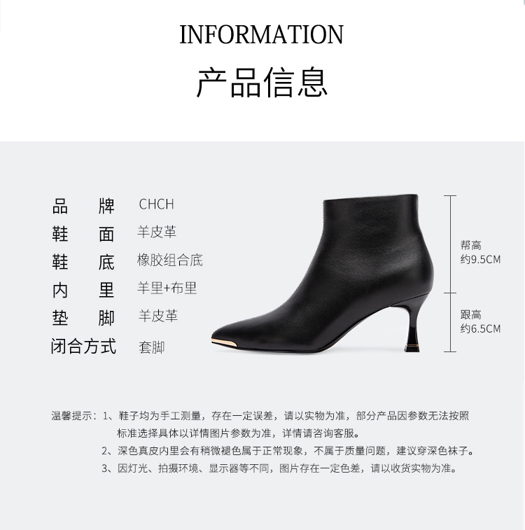 CHCH平衡鞋2024秋冬新品细跟羊皮时装靴时尚侧拉链休闲女靴CO2B6101