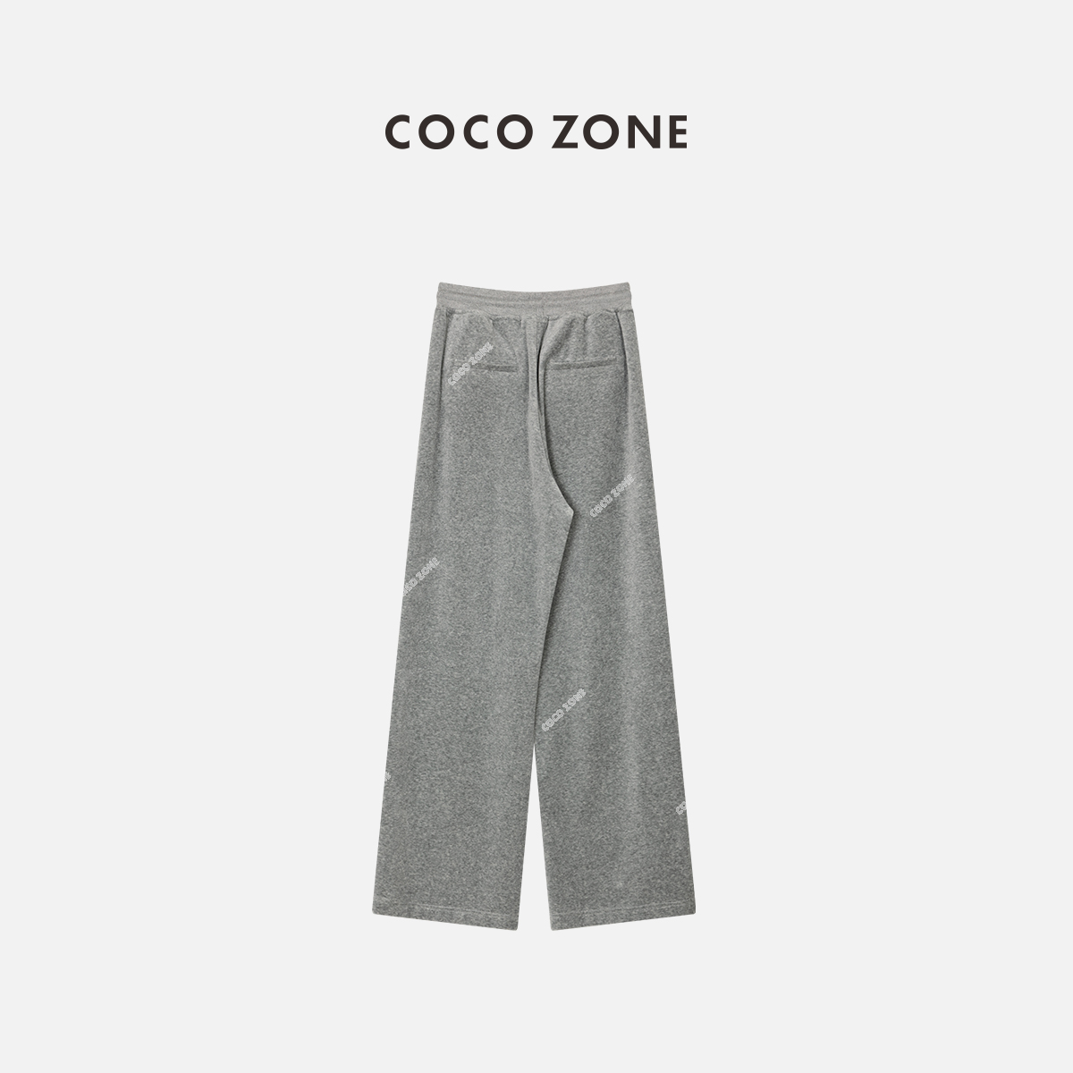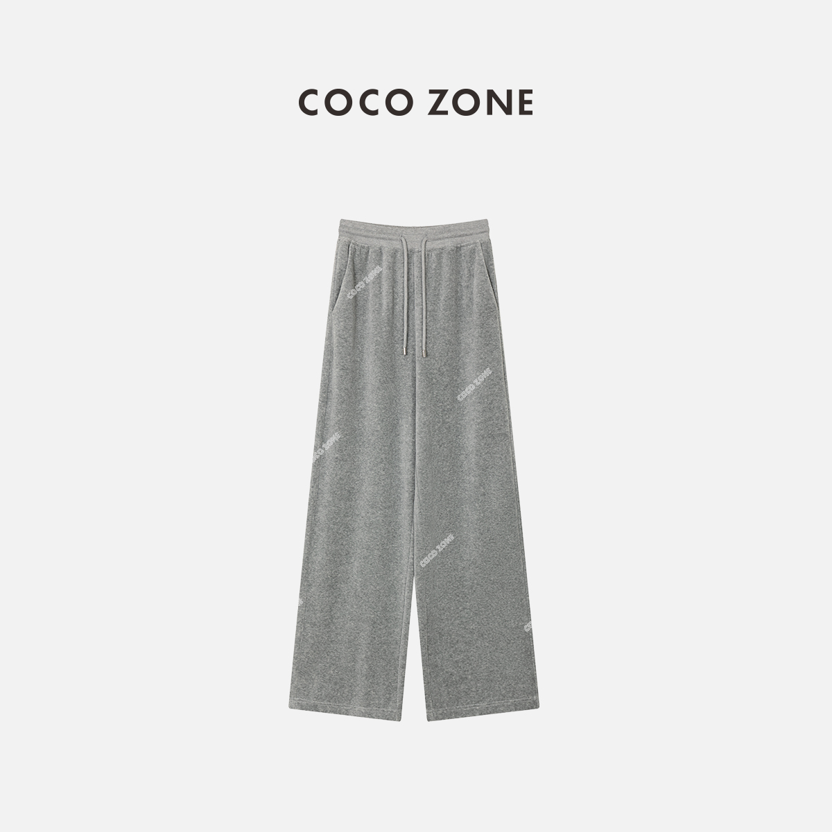 COCO ZONE 春秋新款丝绒裤松紧腰系绳阔腿直筒长裤23C19439
