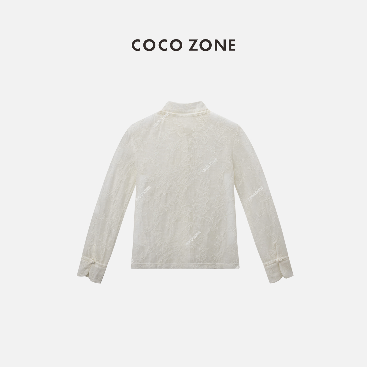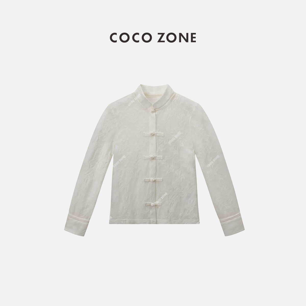 COCO ZONE"南夕美学"春季新中式国风提花立领衬衣长袖上衣CC1A0505