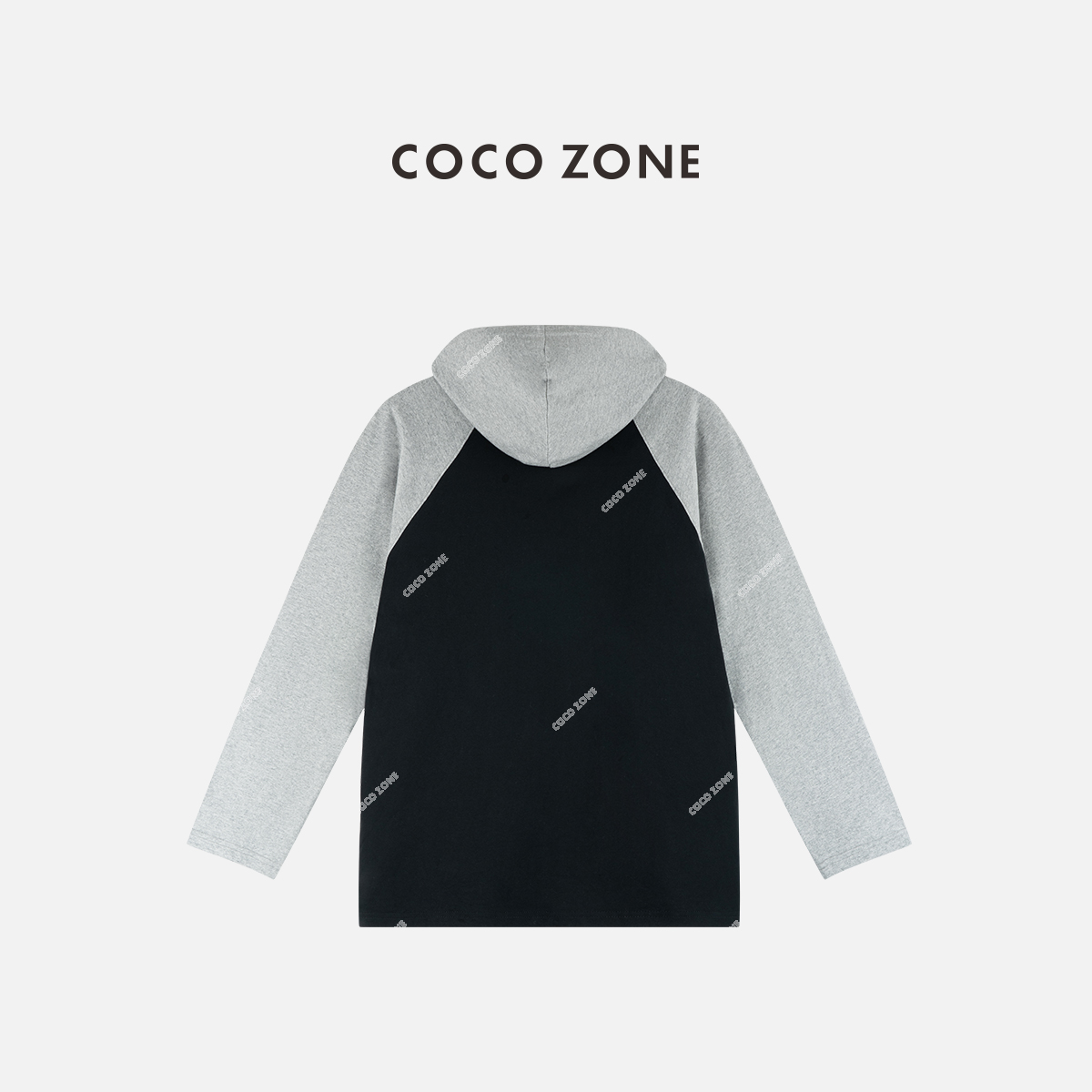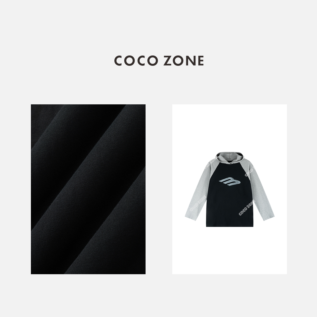 COCO ZONE 100棉撞色长袖T恤设计感连帽上衣CC2C1562