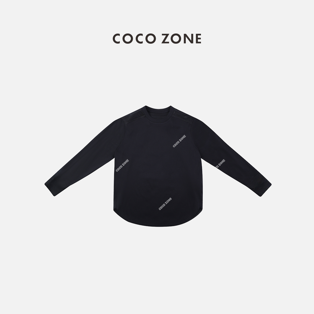 COCO ZONE春季圆领下摆圆弧上衣百搭纯色长袖T恤CC1A0379