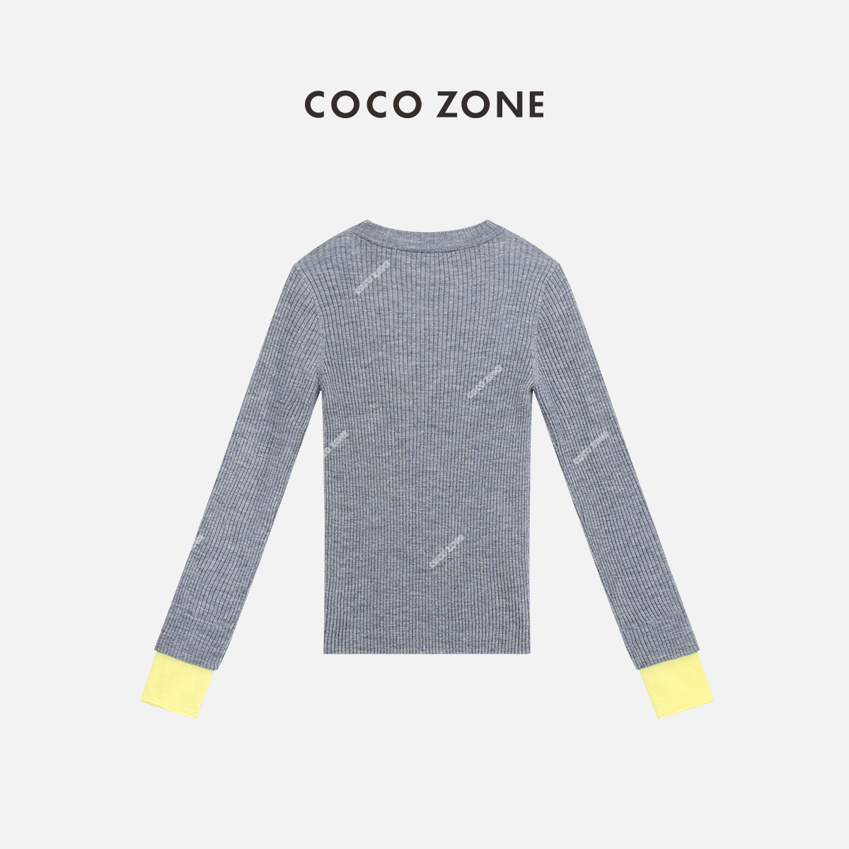 COCO ZONE 2024圆领针织衫时尚拼接撞色设计感毛衣24C10351