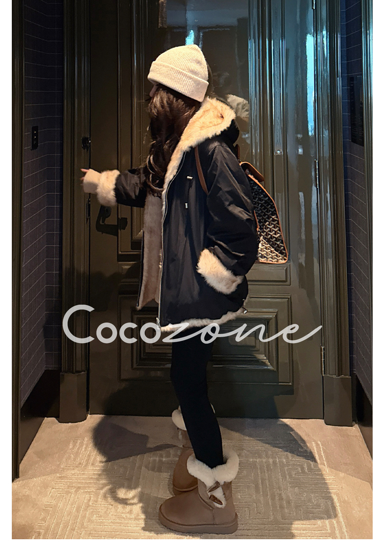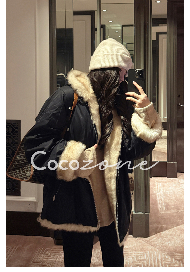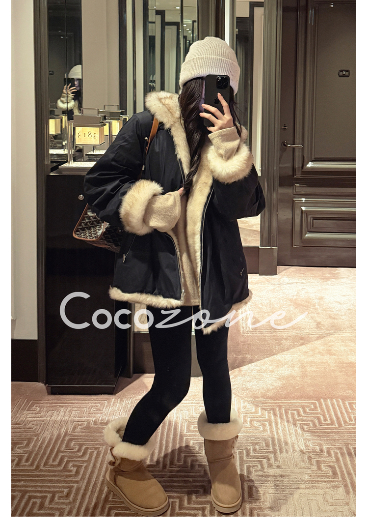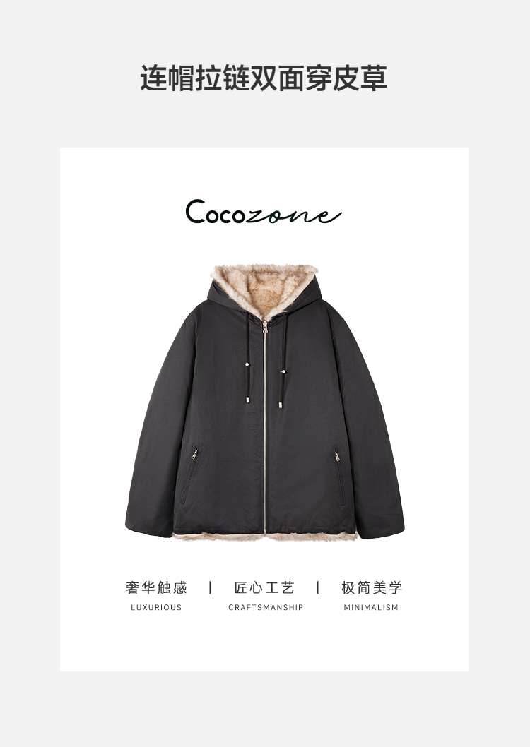COCO ZONE 刘 一一 “马德里”进口连帽拉链皮草 CD2A3116