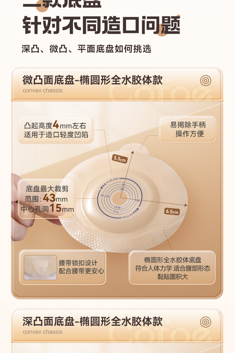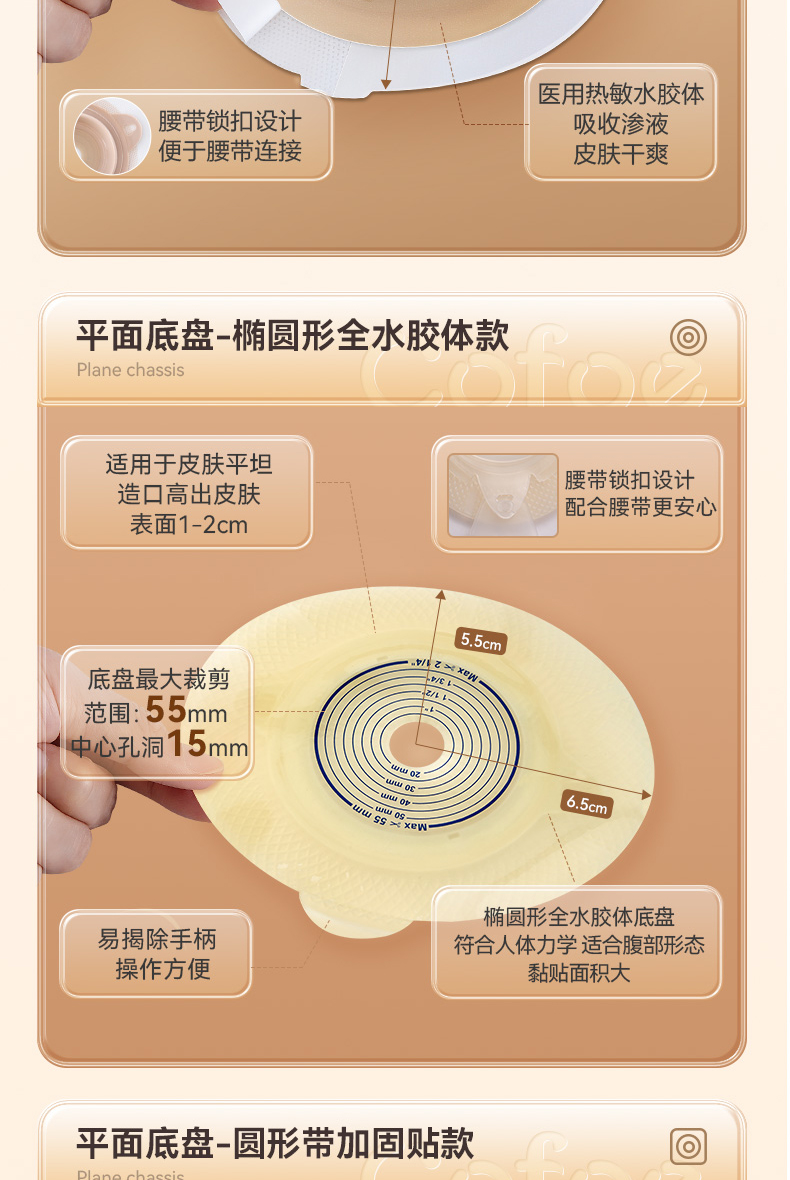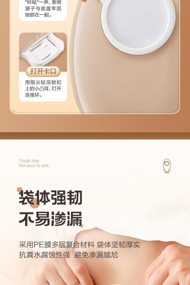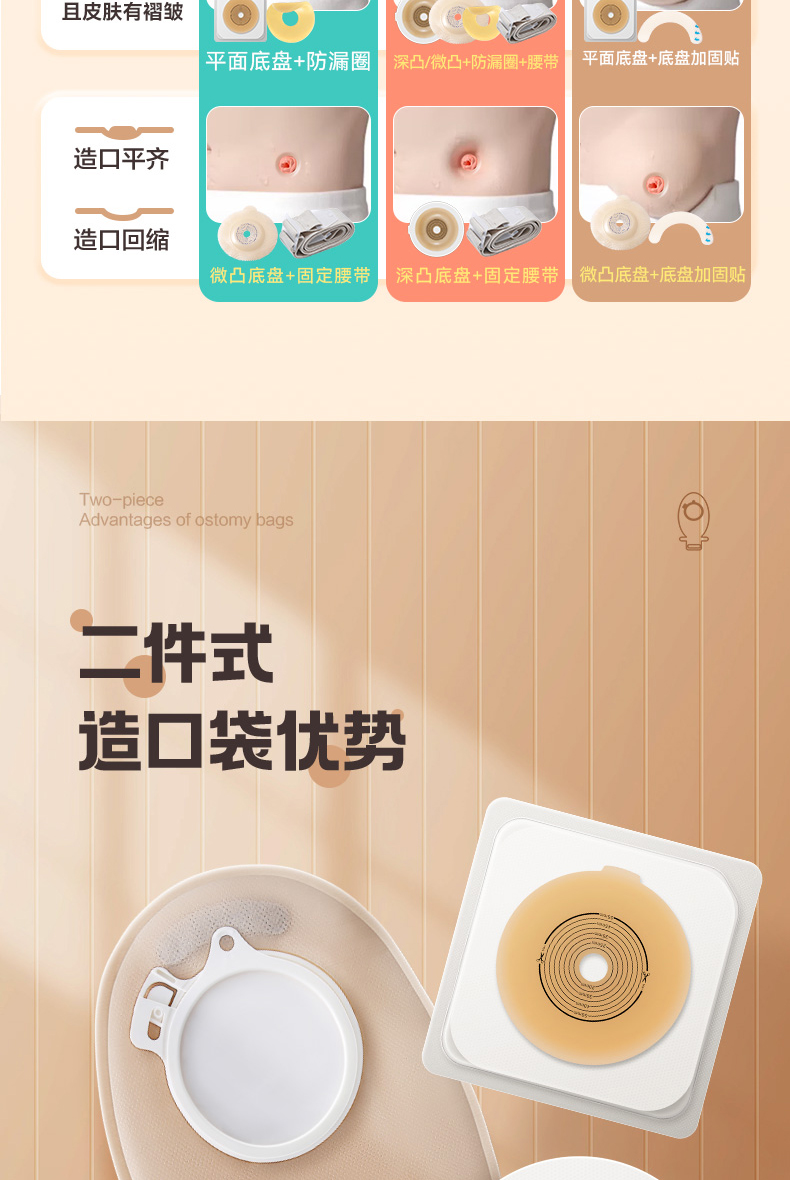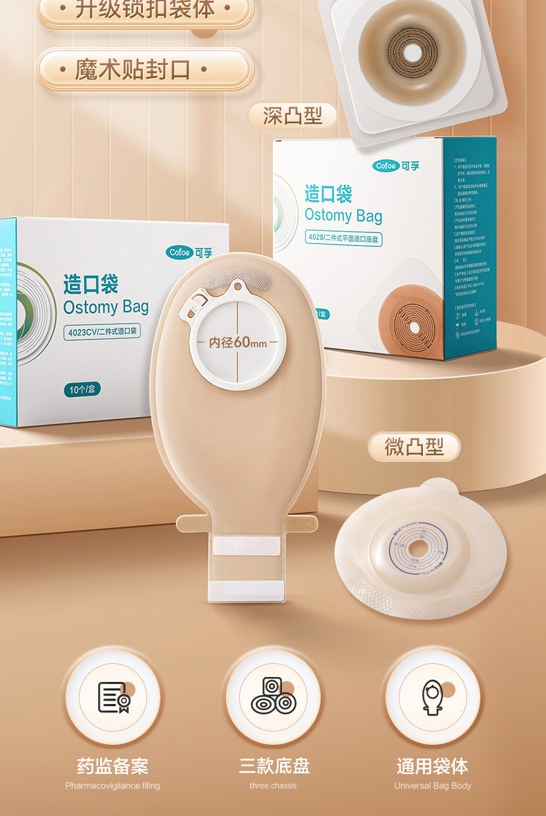 可孚二件式微凸造口袋锁扣式直肠癌大肠改道口袋造瘘粪袋凸面底盘