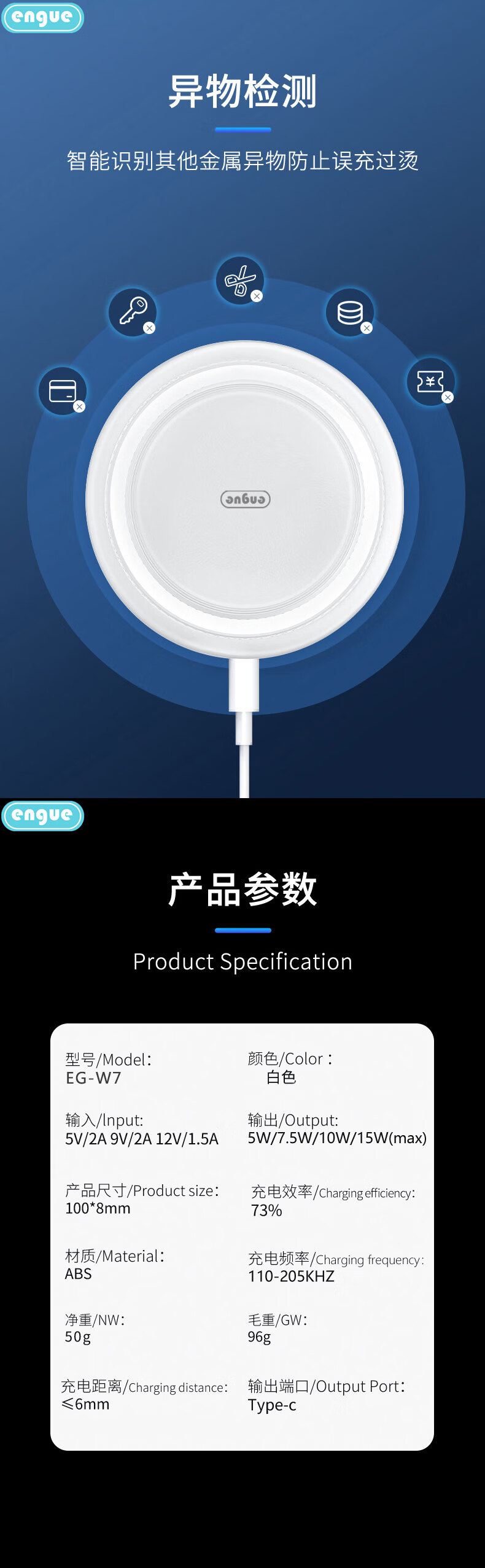 engue恩谷15W 极简式无线充电器EG-W7