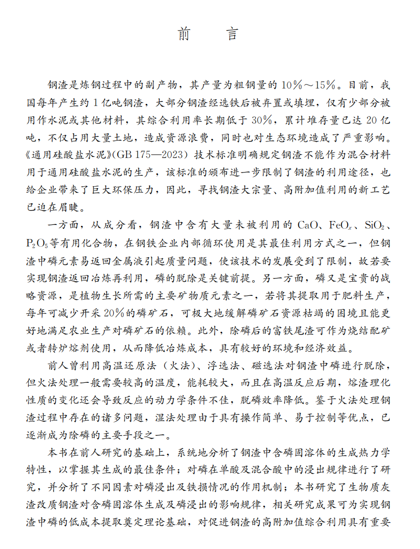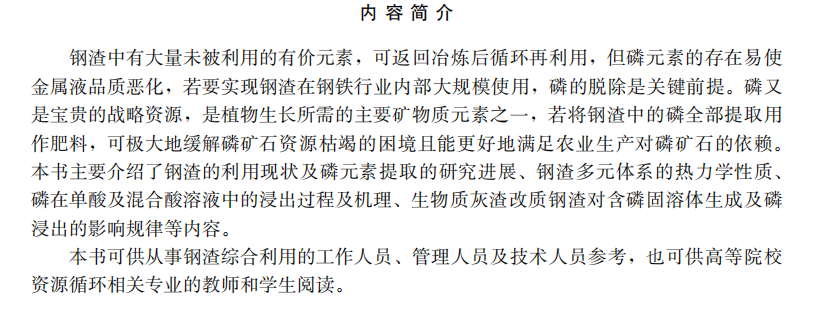 钢渣中磷元素提取技术/吕宁宁著:中国建材工业出版社,2024 ISBN 9787516042540