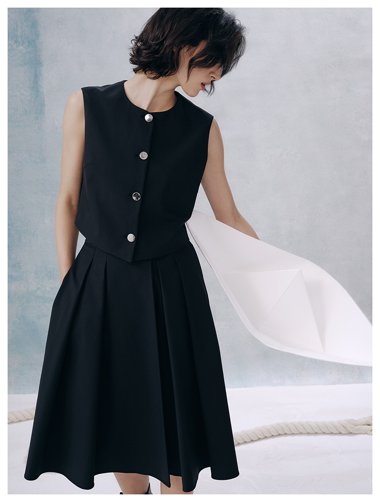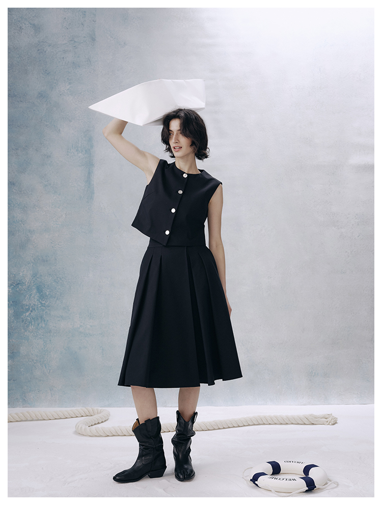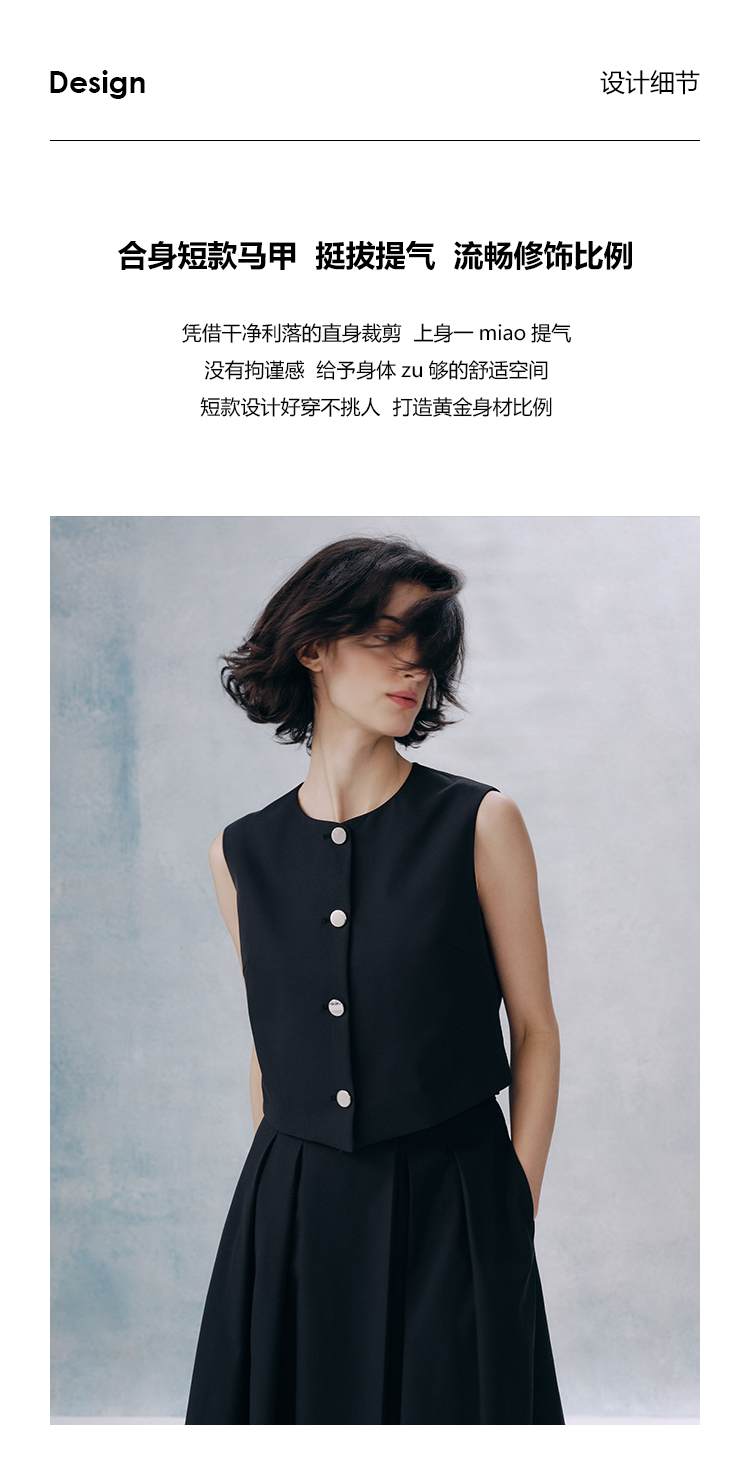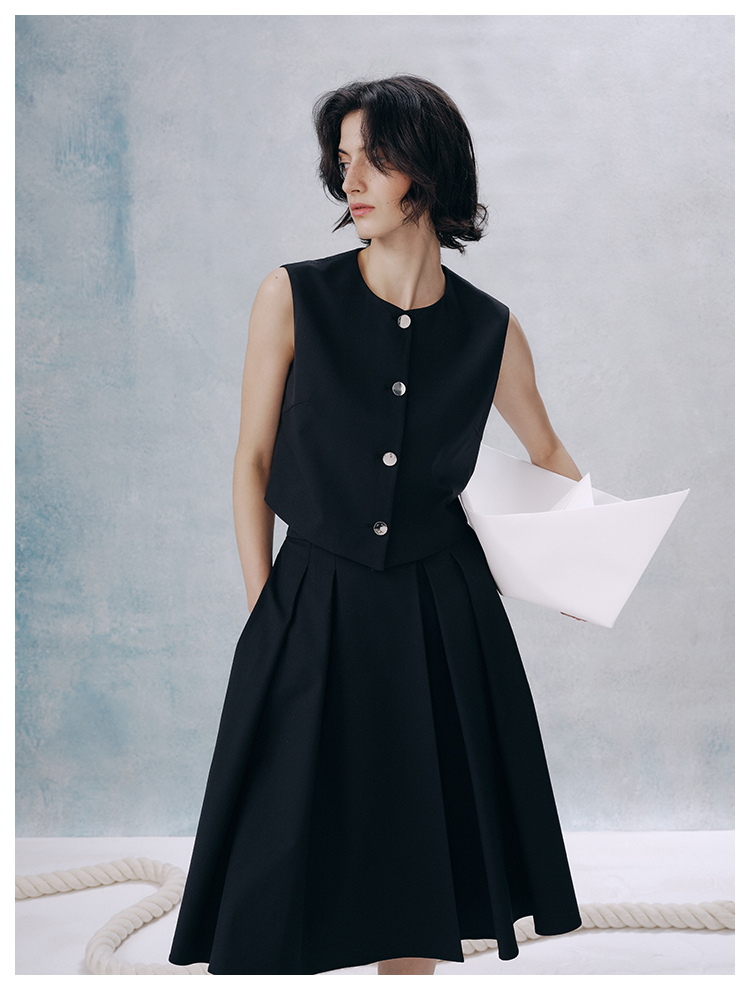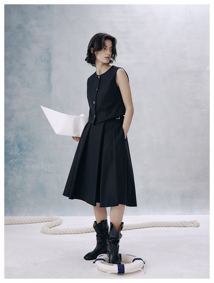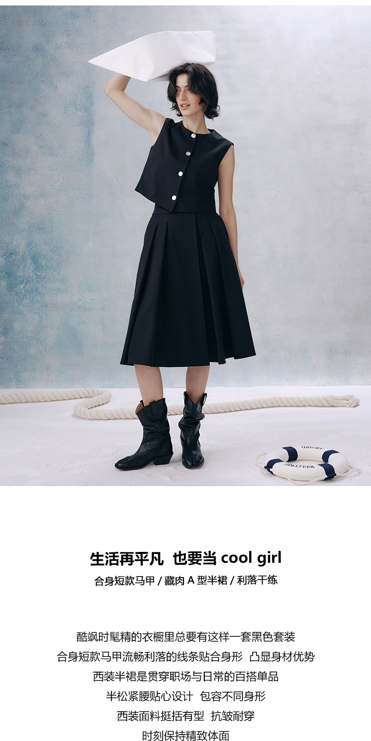 UMILAB【甜酷】挺阔K皱斜纹肌理短款马甲/半松紧腰A型半裙H1263M