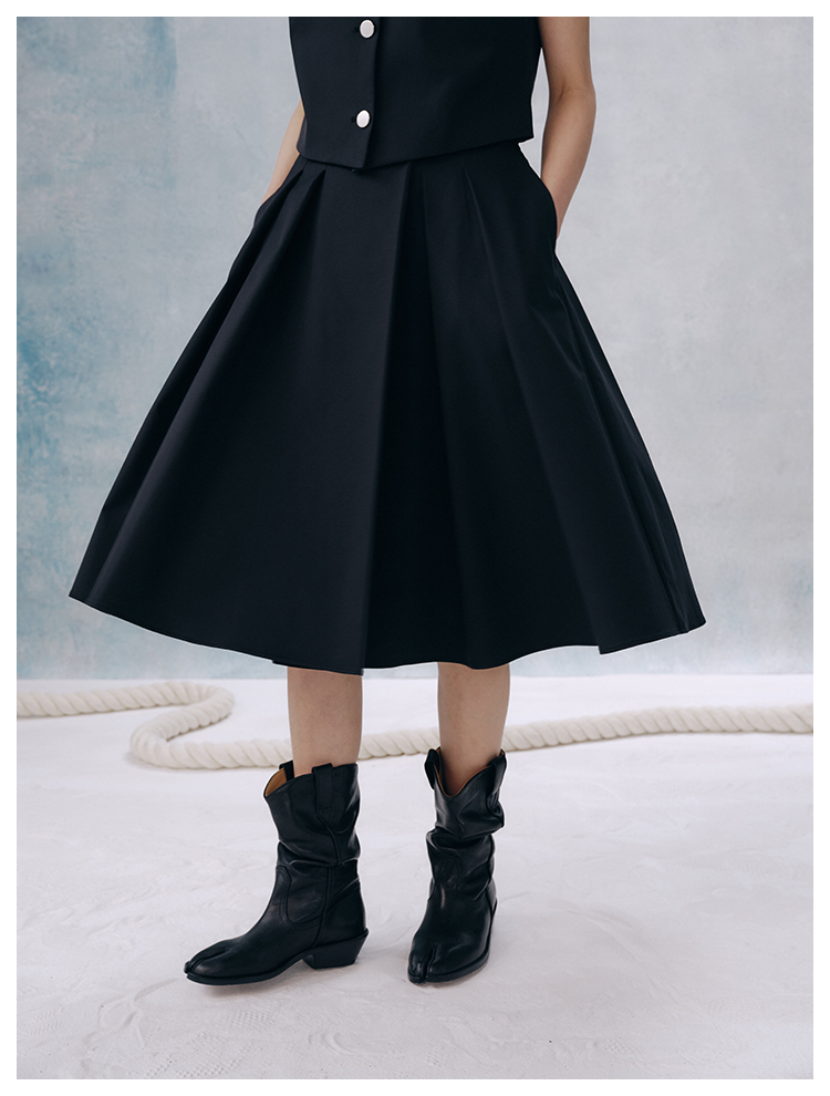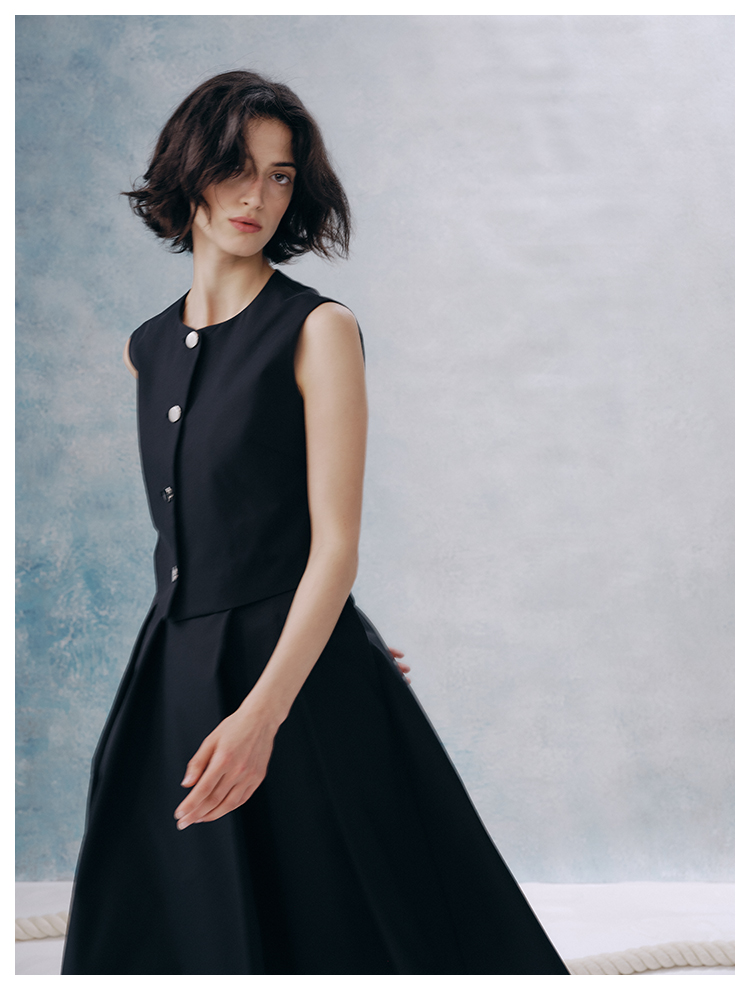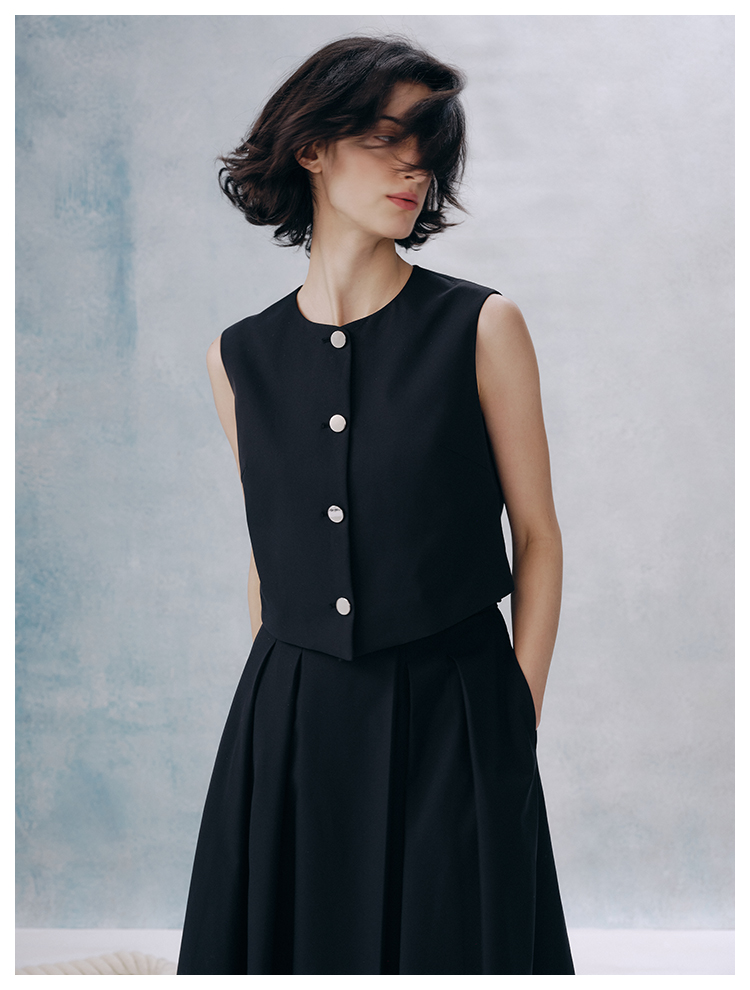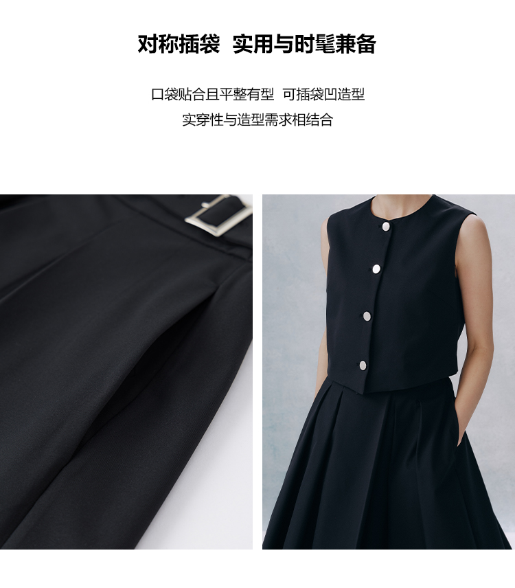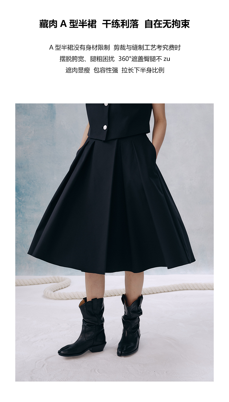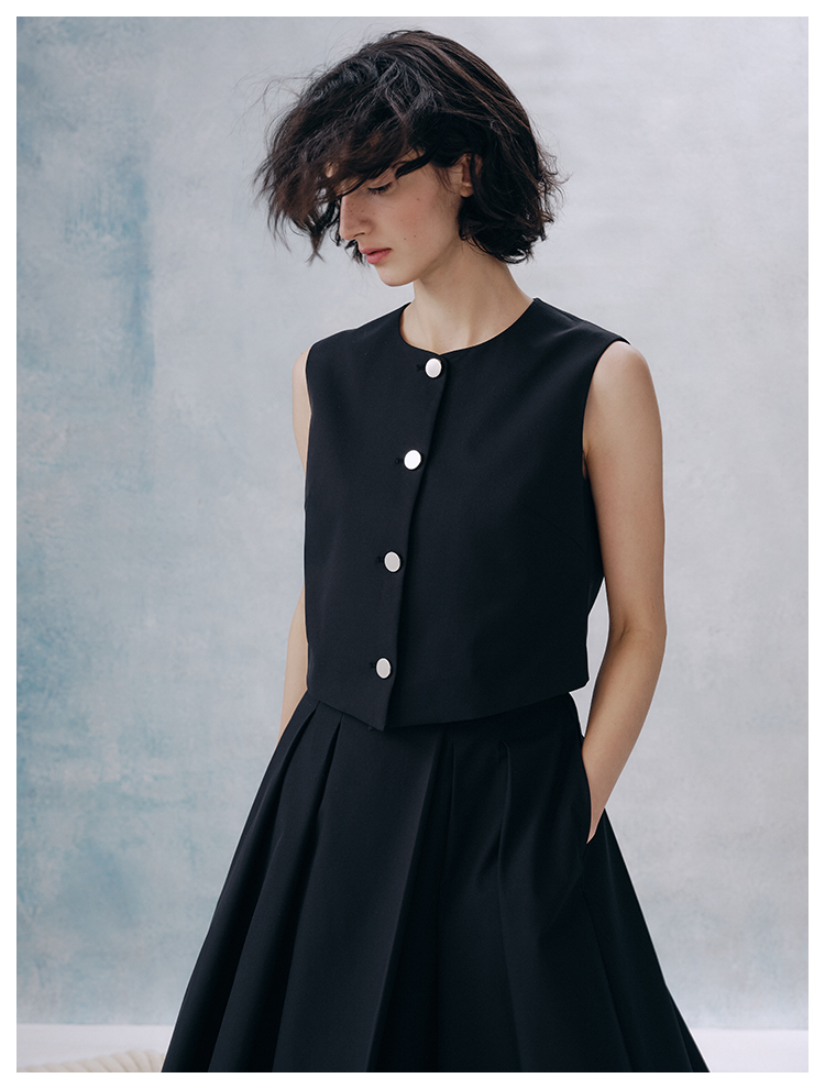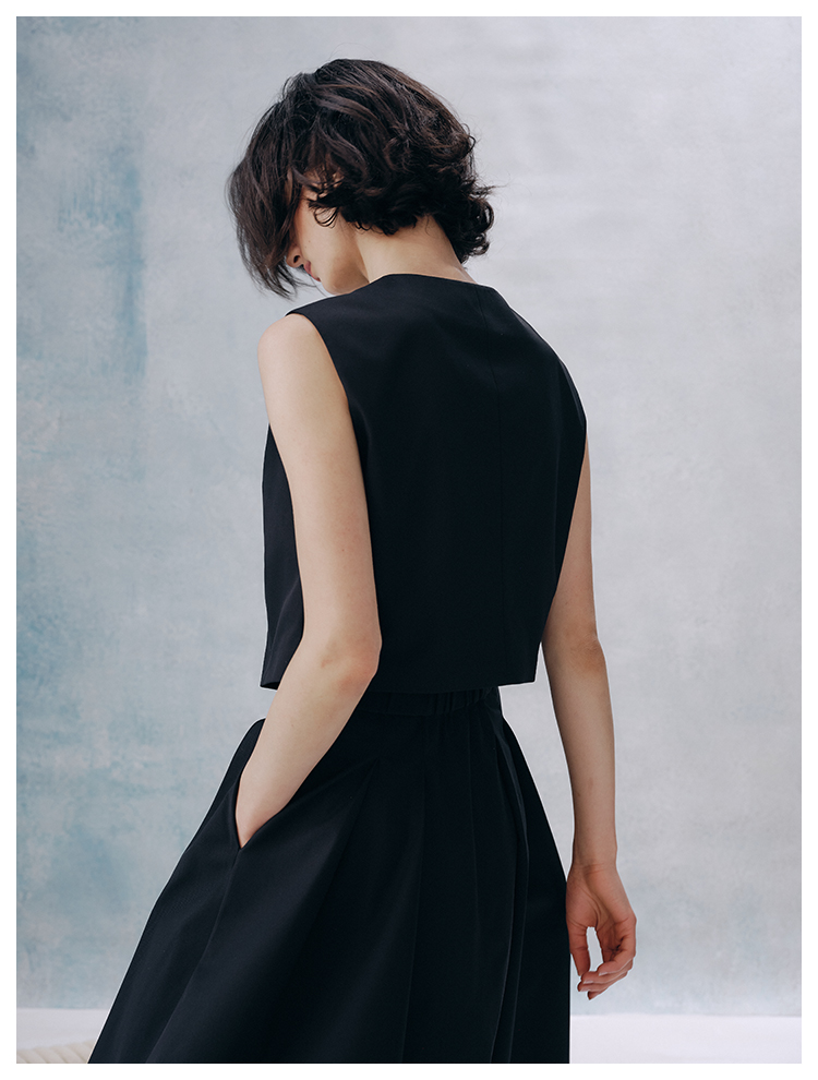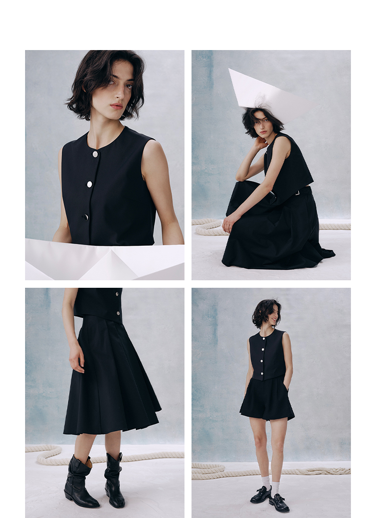 UMILAB【甜酷】挺阔K皱斜纹肌理短款马甲/半松紧腰A型半裙H1263M