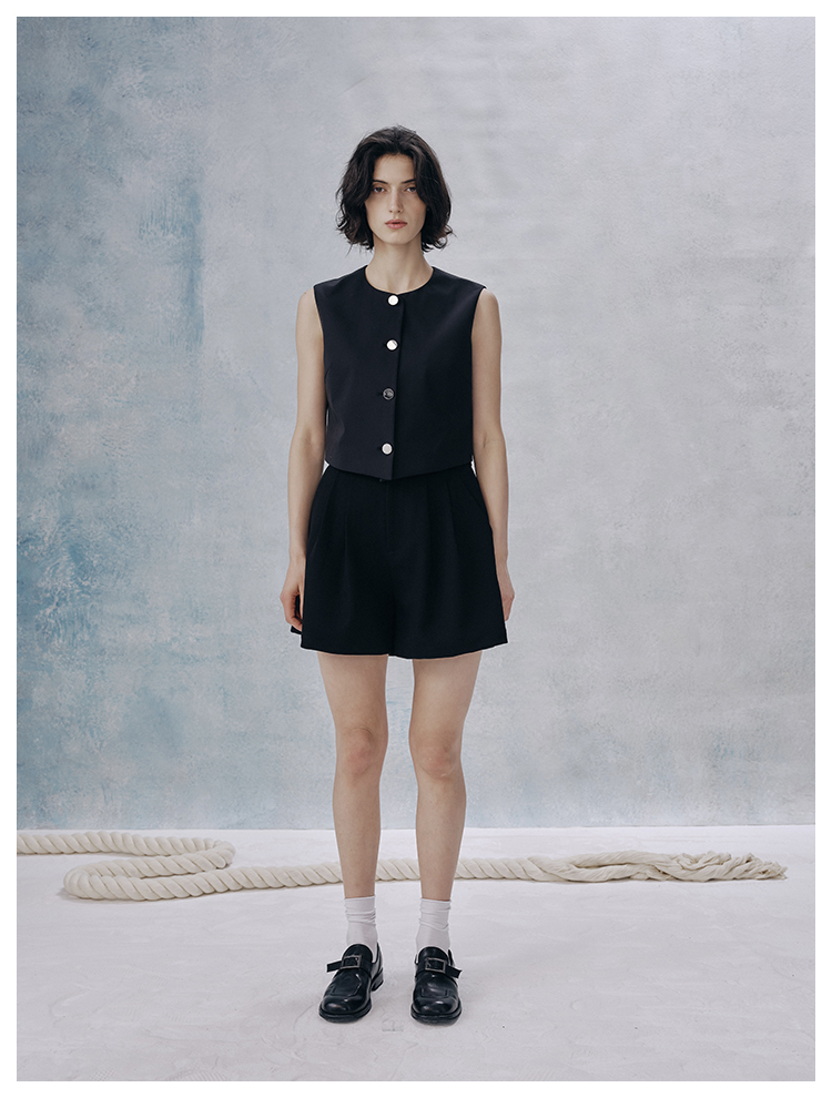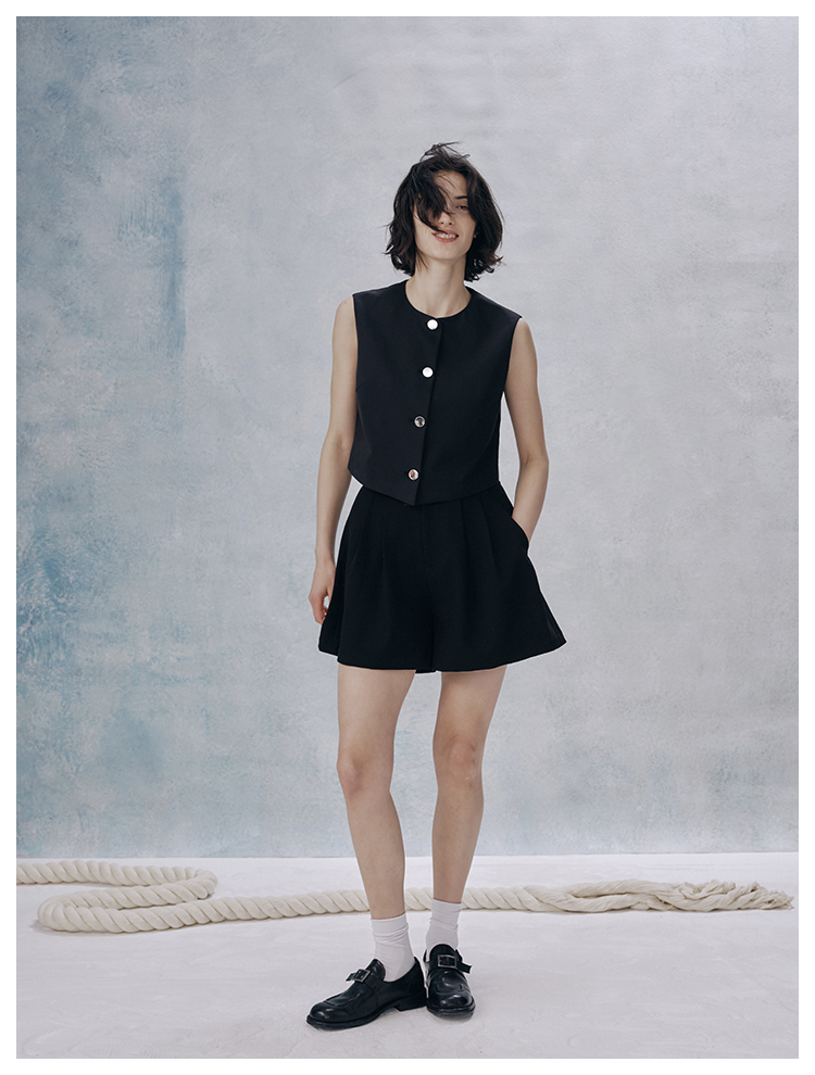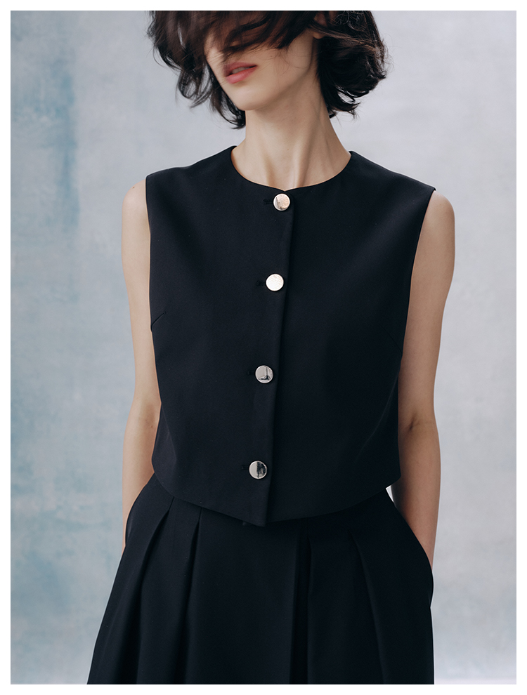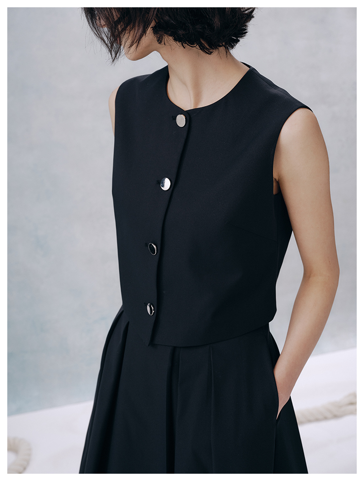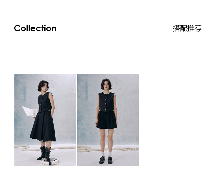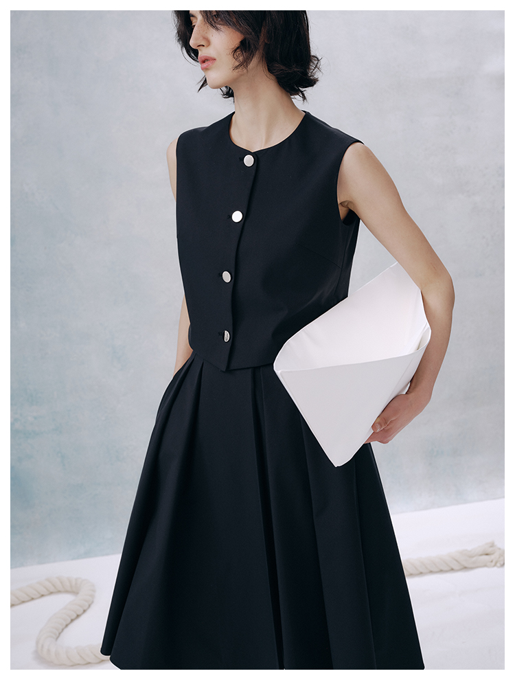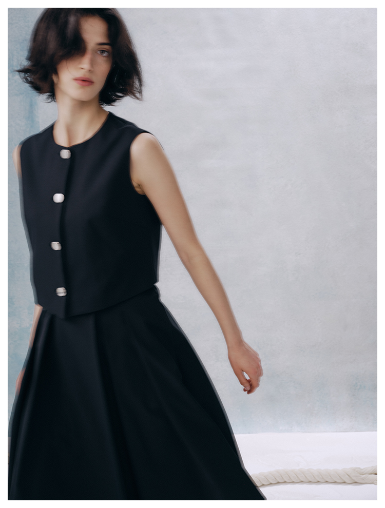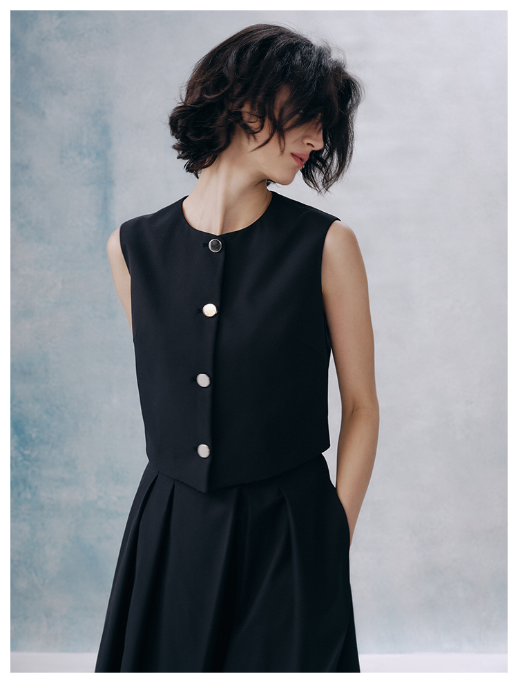 UMILAB【甜酷】挺阔K皱斜纹肌理短款马甲/半松紧腰A型半裙H1263M