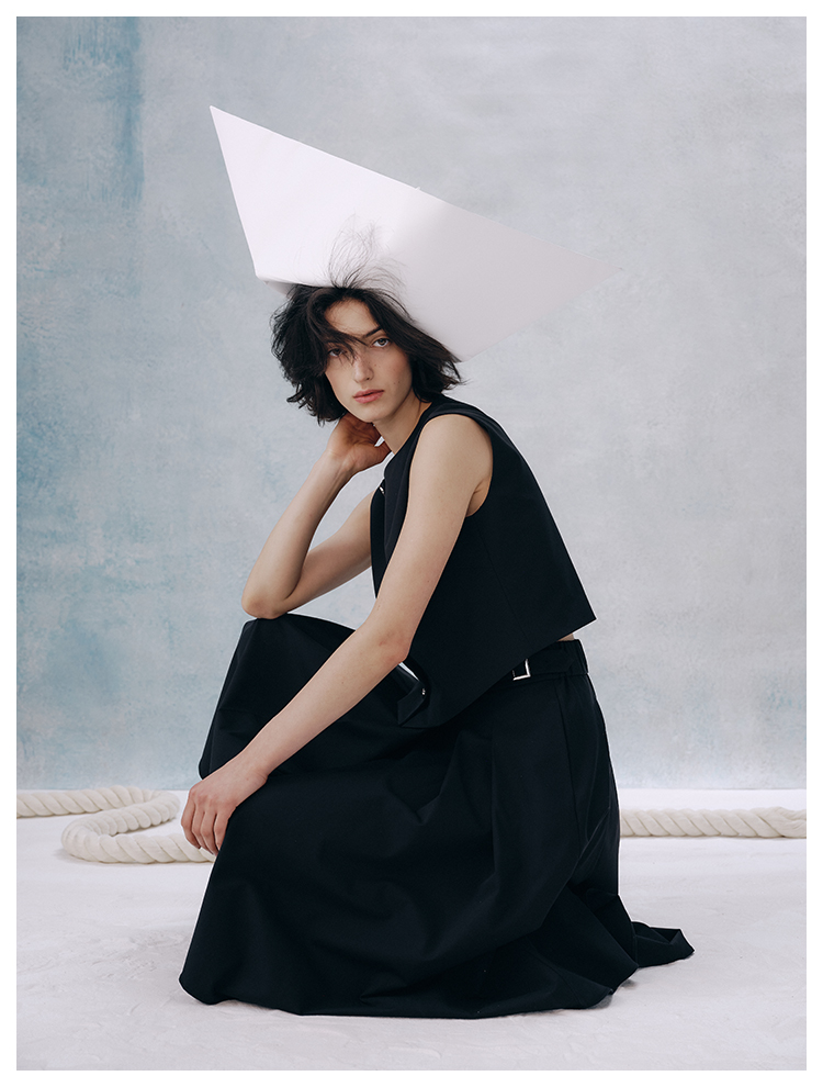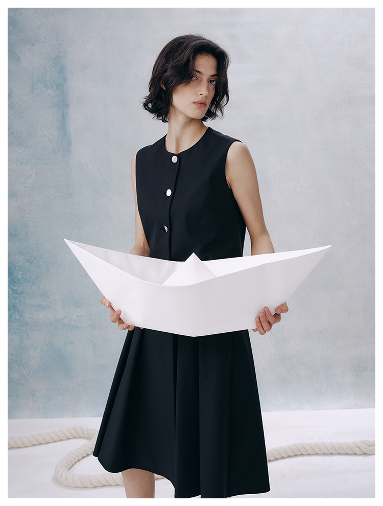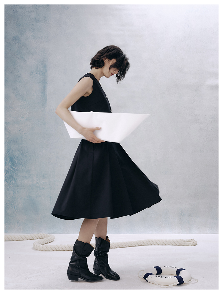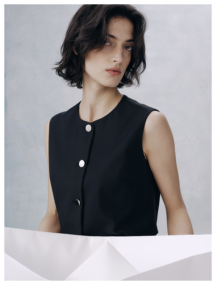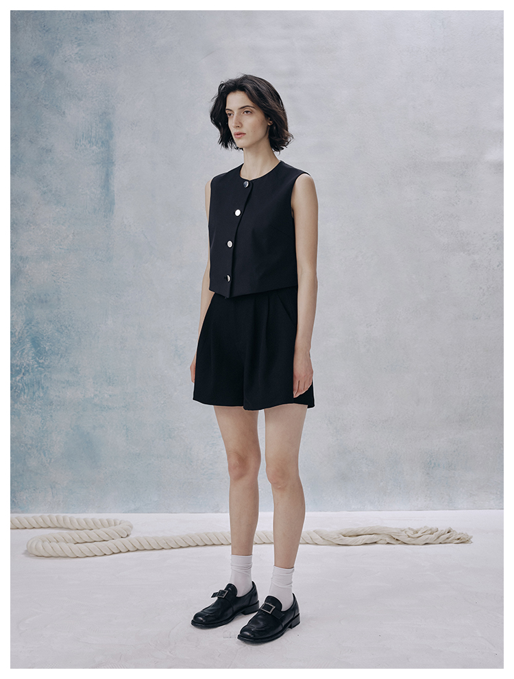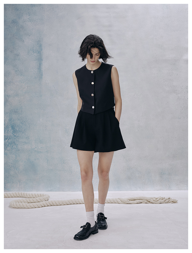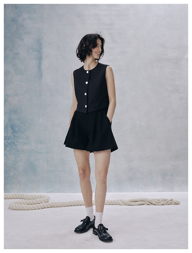 UMILAB【甜酷】挺阔K皱斜纹肌理短款马甲/半松紧腰A型半裙H1263M