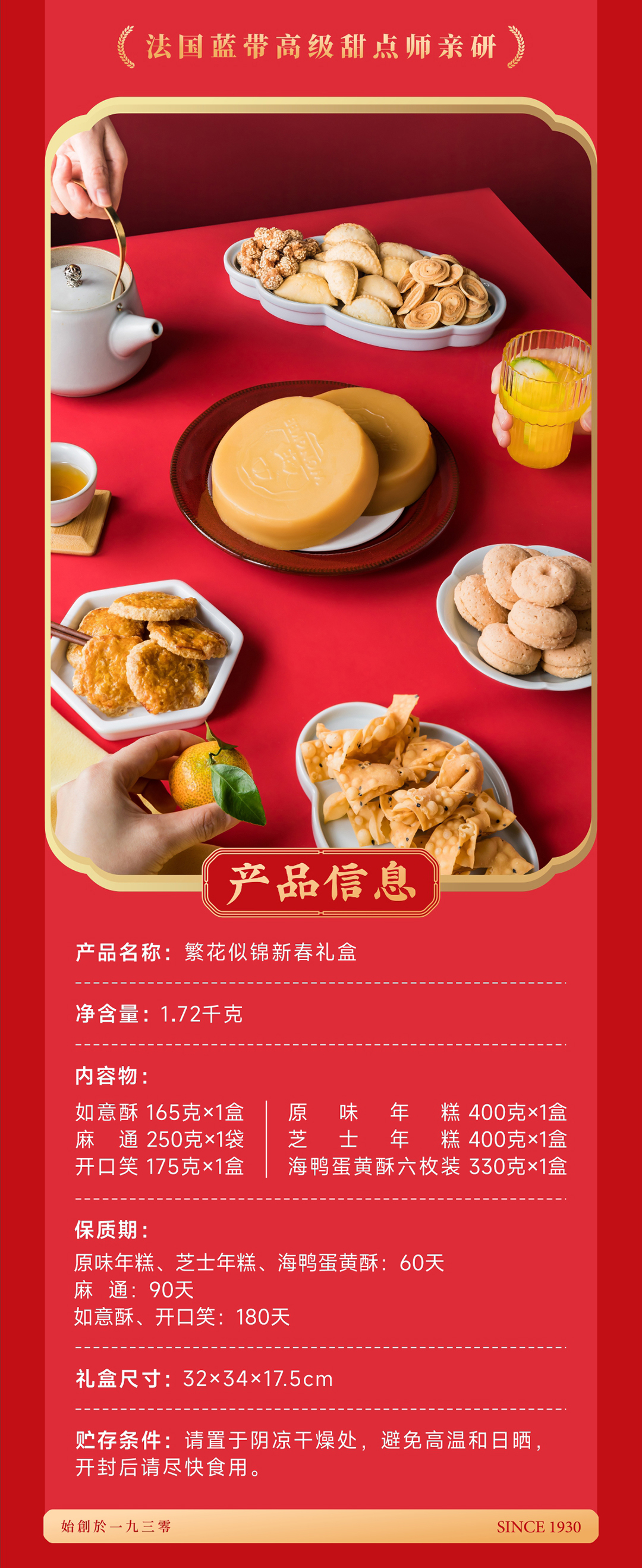 招财进宝新春礼盒 金元宝大礼包 蓝带配方 小花曲奇/核桃钻石饼/马年什锦曲奇 750克/盒