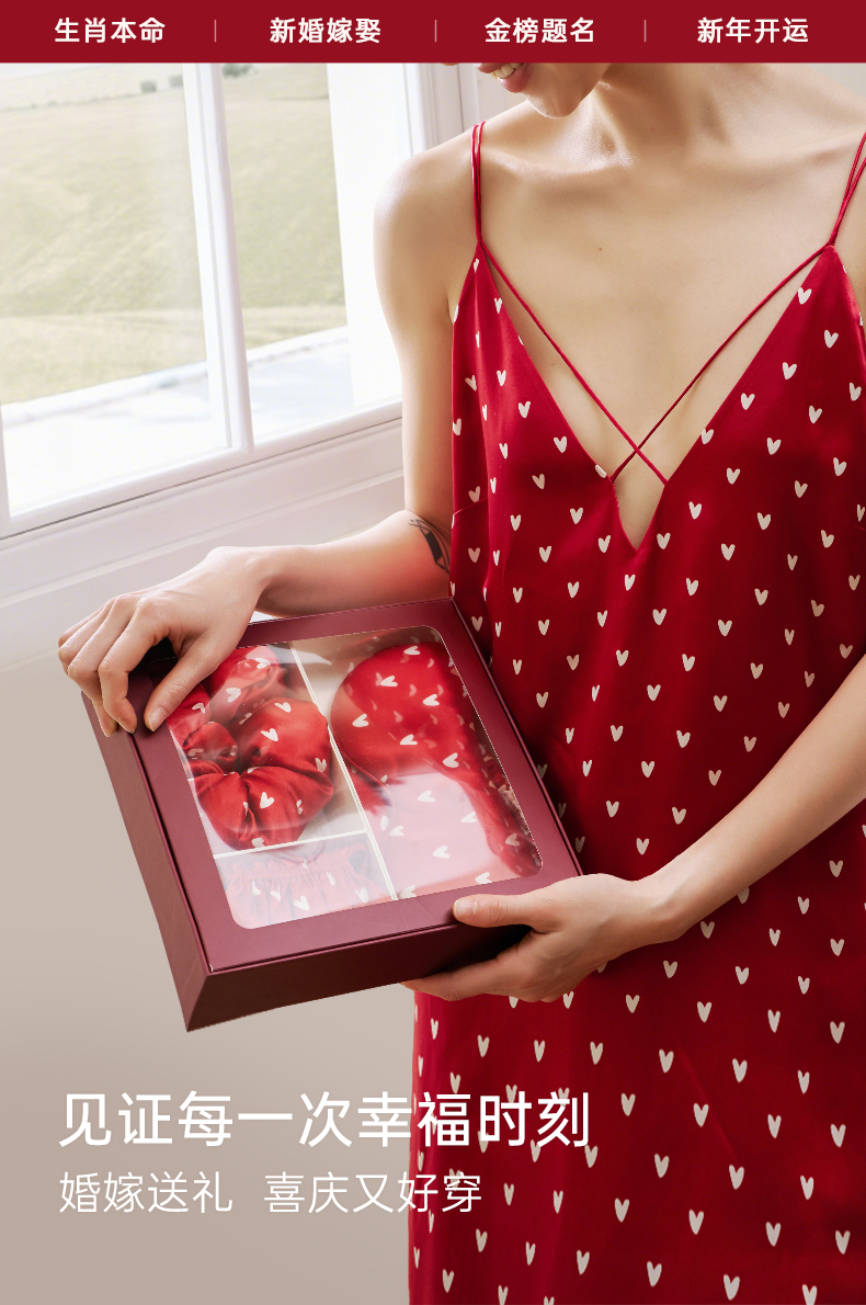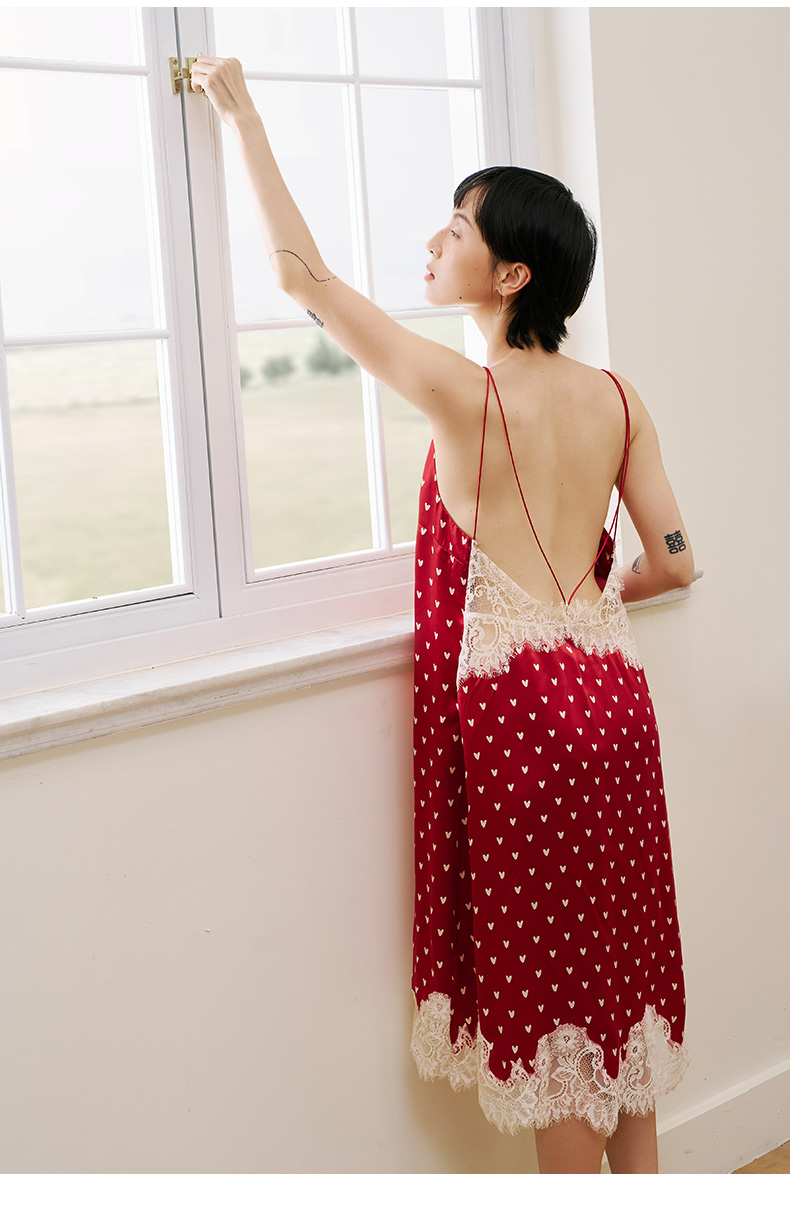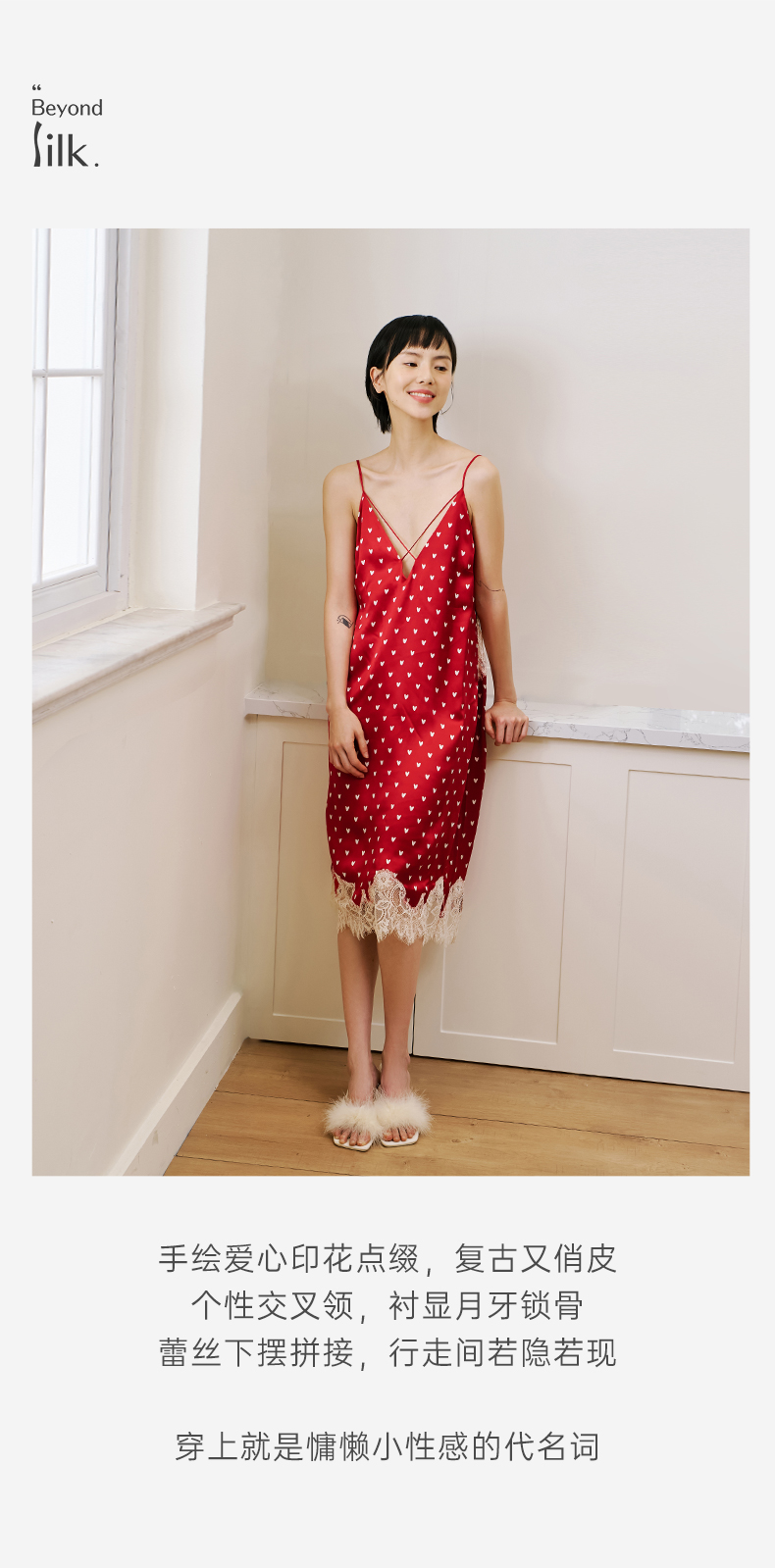 红运当头』桑罗爱心印花真丝吊带裙100%桑蚕丝女士睡裙可外穿送礼