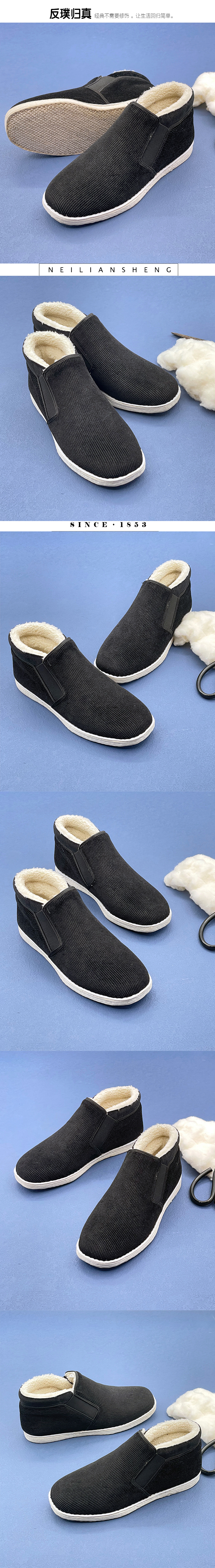 内联升男鞋手工棉鞋千层底高腰灯芯绒毛领棉靴8542A
