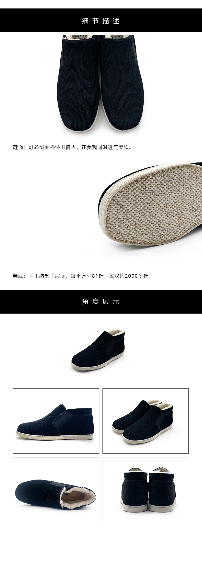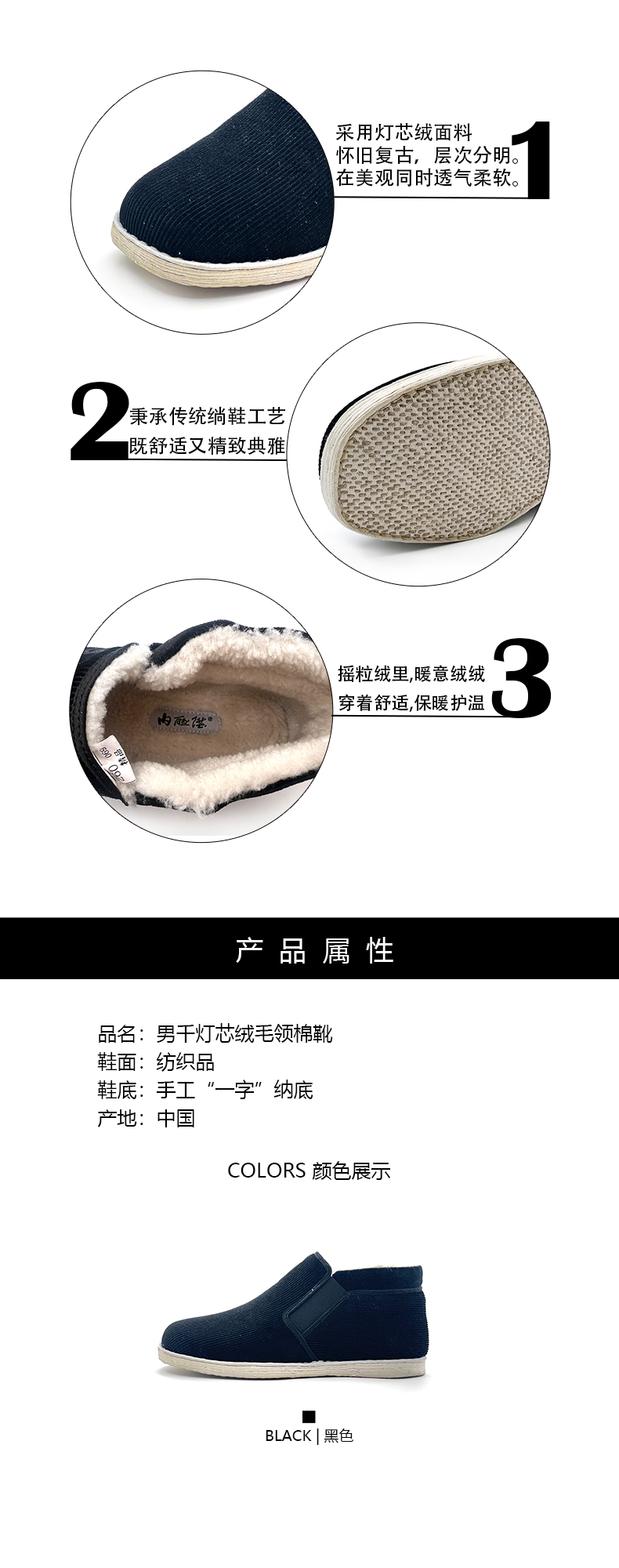 内联升男鞋手工棉鞋千层底礼高巾棉写贴胶8140/8121