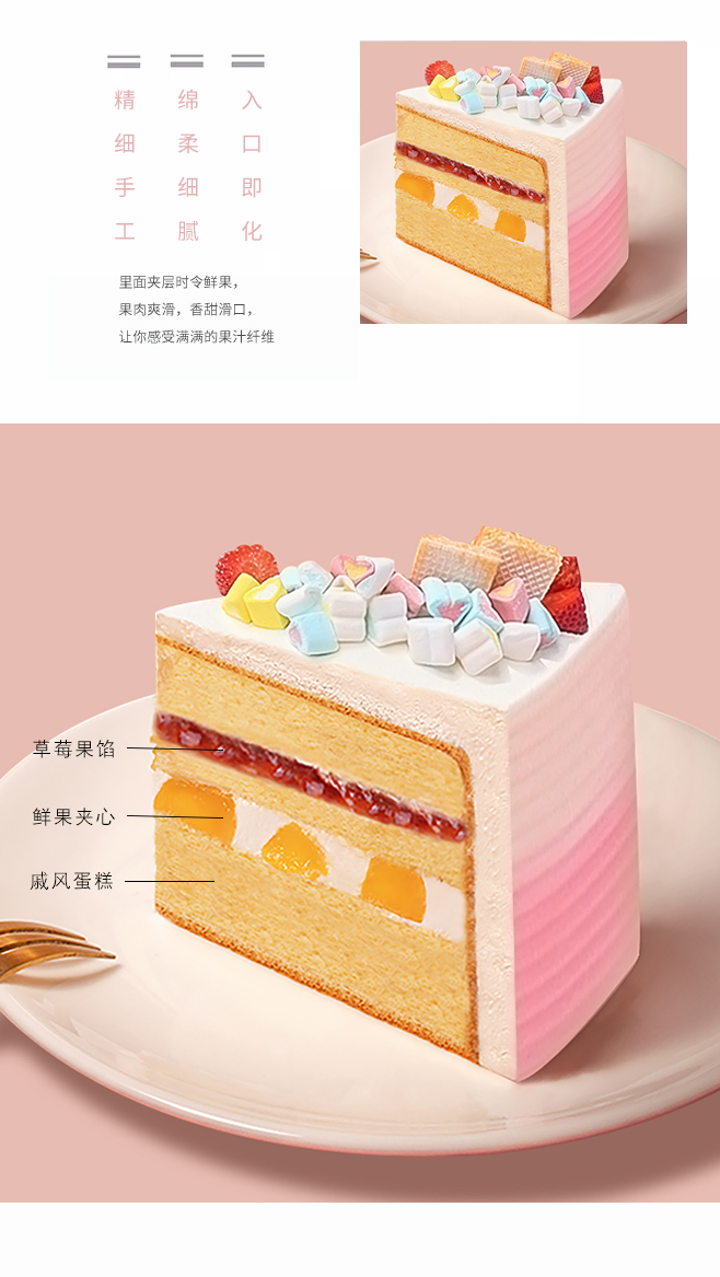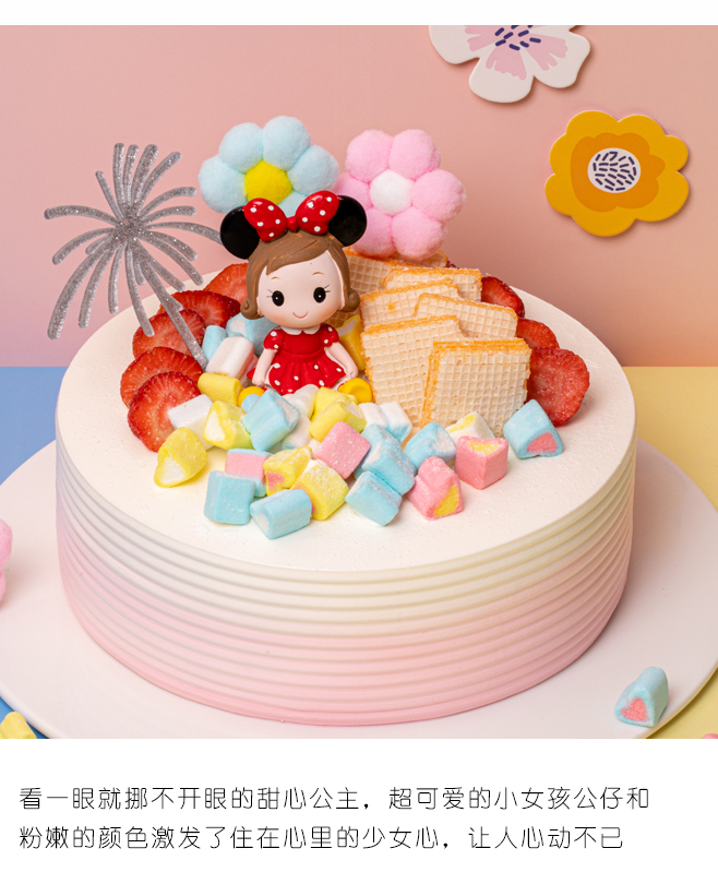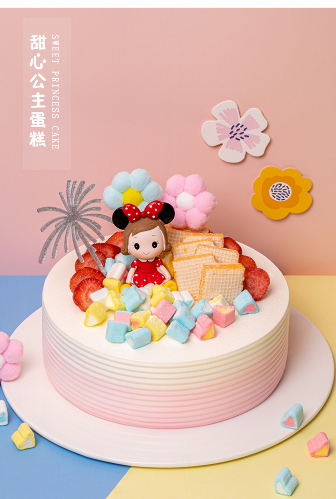 甜心公主蛋糕,草莓果馅+鲜果夹心,2磅,免费送货上门