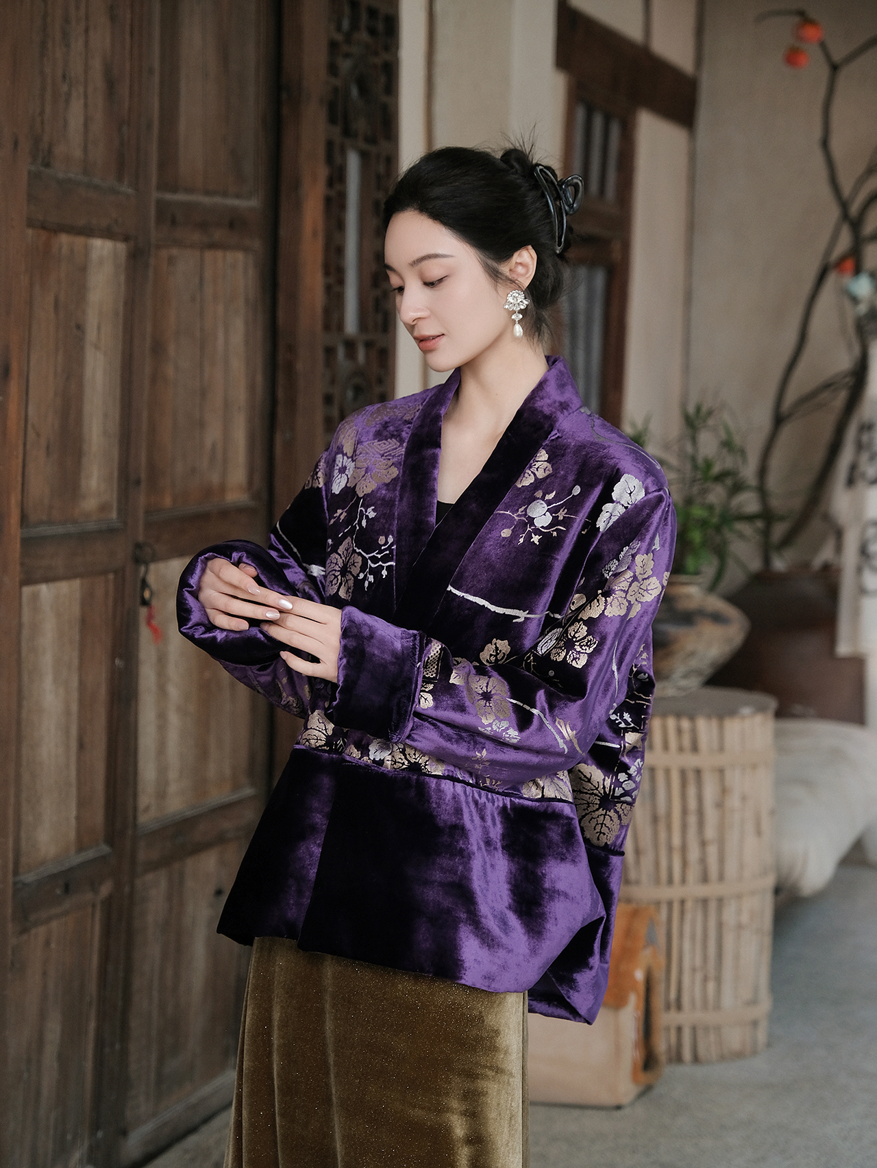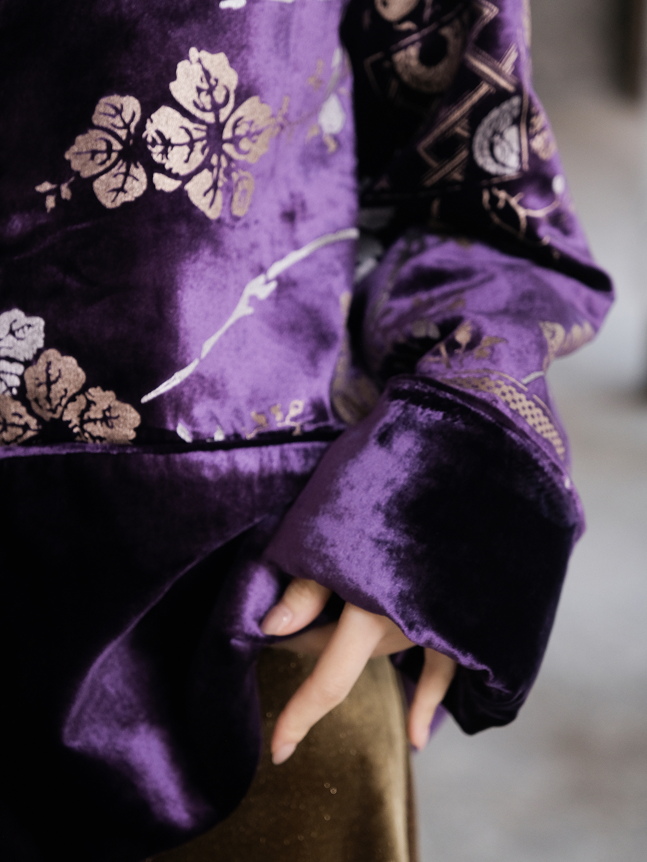 盛唐牡丹| 凝夜紫丝绒烫银棉外套