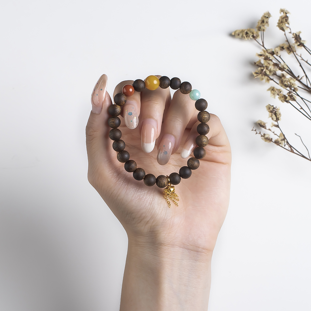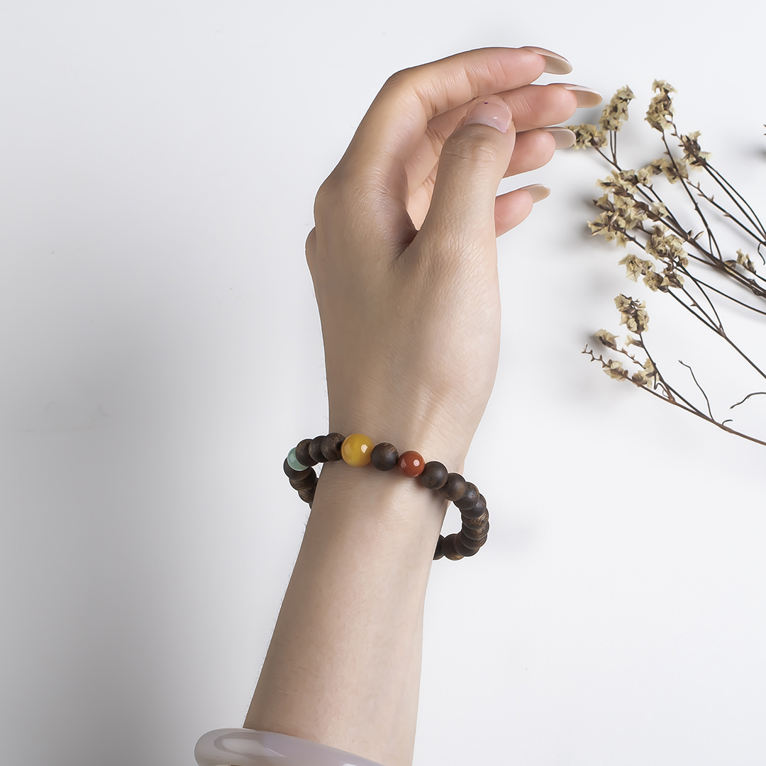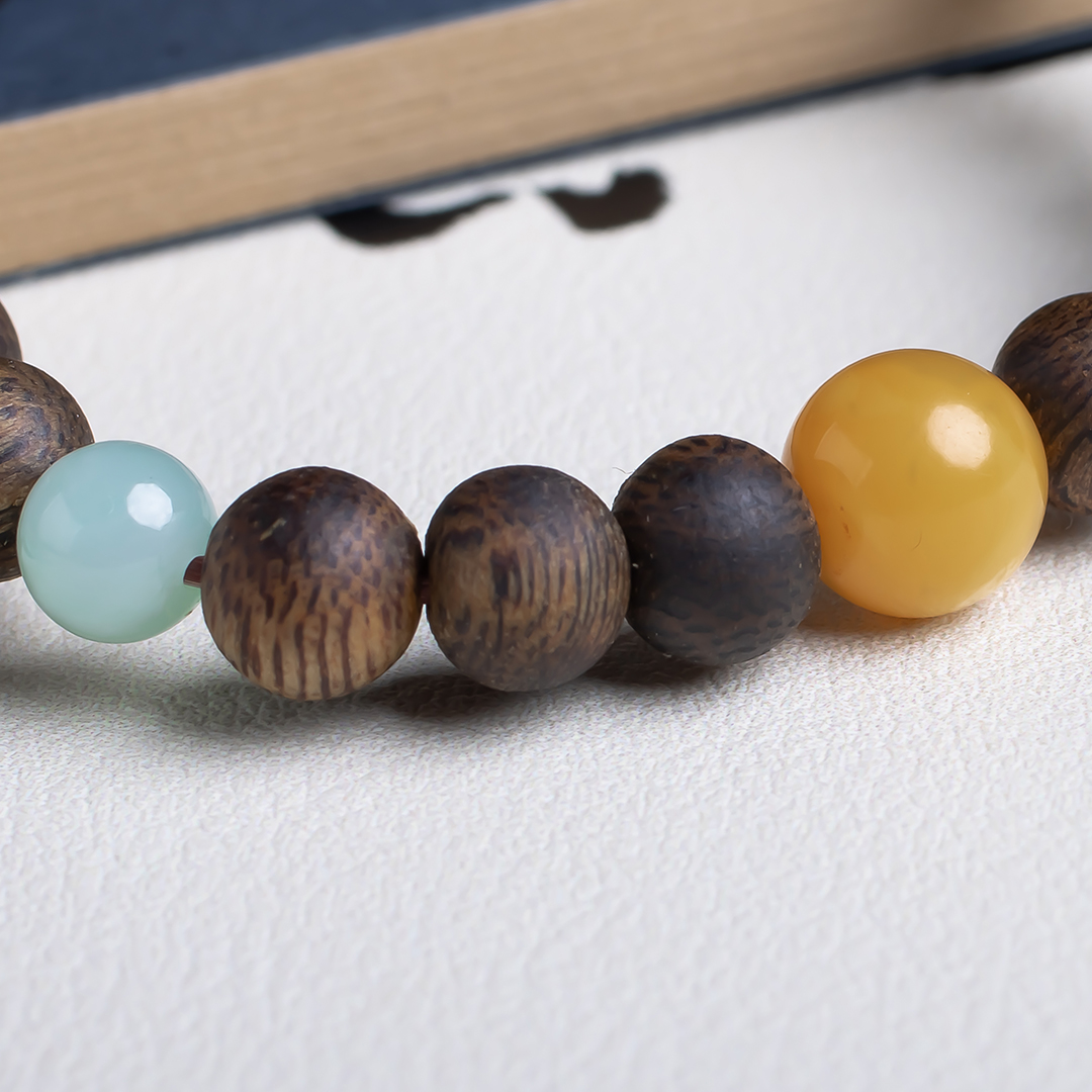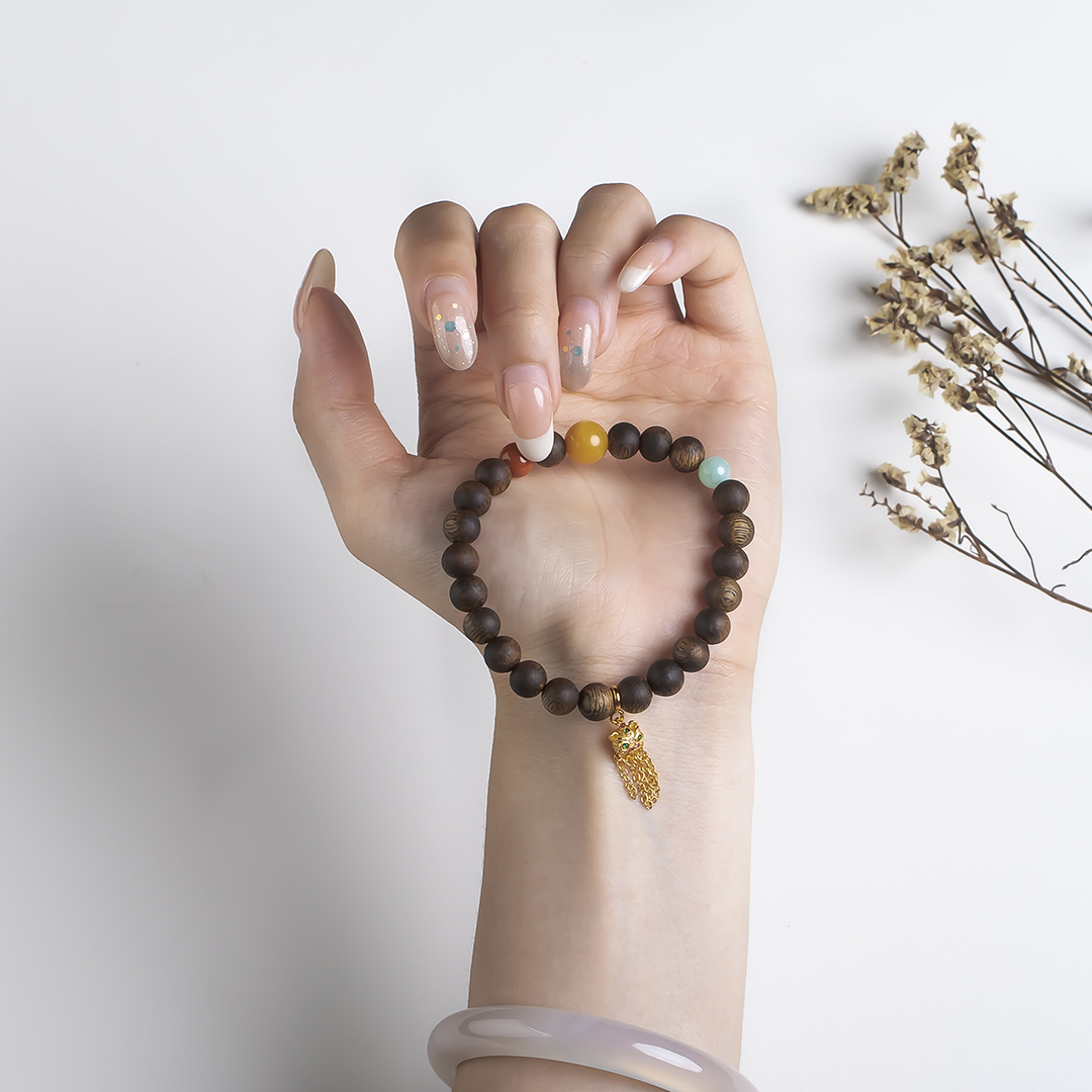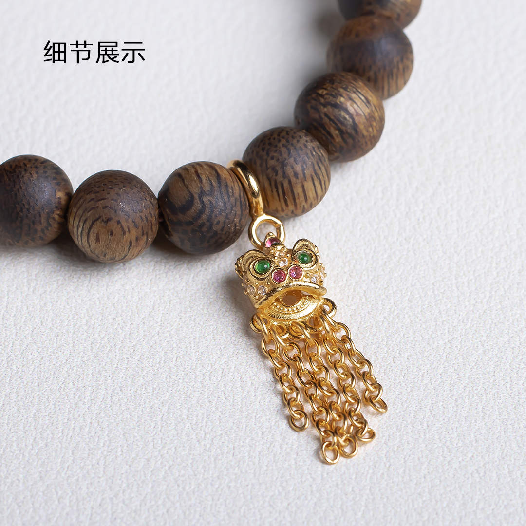 xy0548沉香+蜜蜡南红翡翠手串,天然沉香约7.5mm,原色原味,香味自然清甜,南红蜜蜡翡翠三宝温润养身,一枚925银醒狮小坠,吉祥、安康,事业和顺。