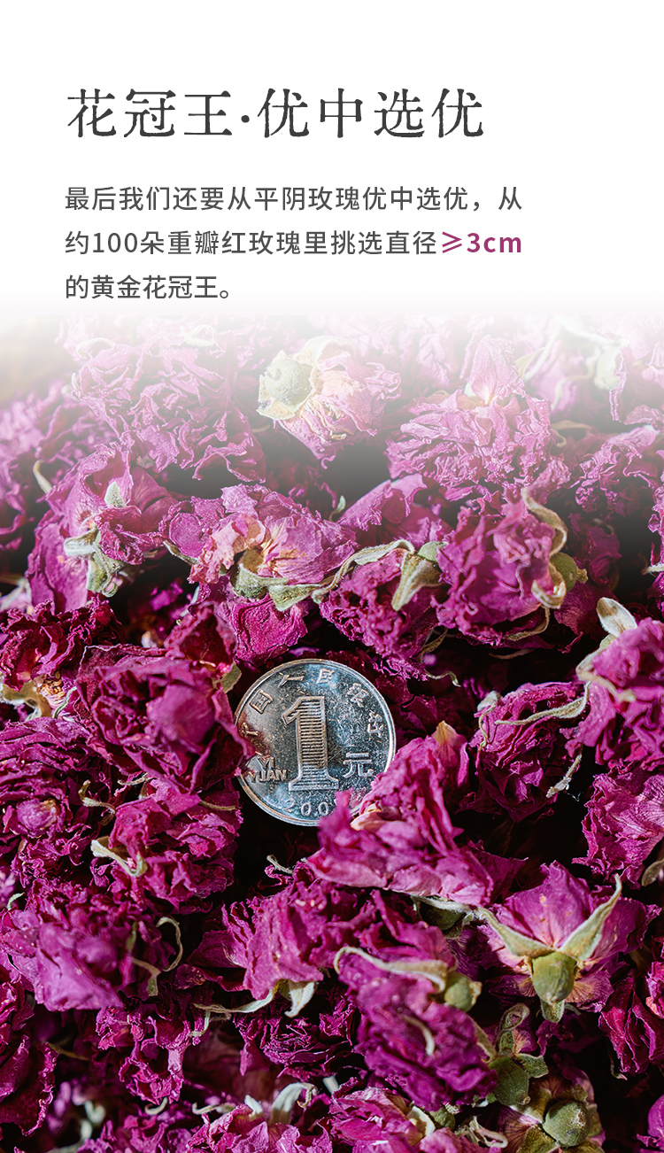 【昀蓉时光·平阴玫瑰花冠王】(重瓣玫瑰花)只选头期玫瑰 大朵浓郁 ·直径≥3cm的黄金花冠·芬芳扑鼻 ·花香满溢·拒绝熏硫 无添加 60g/瓶