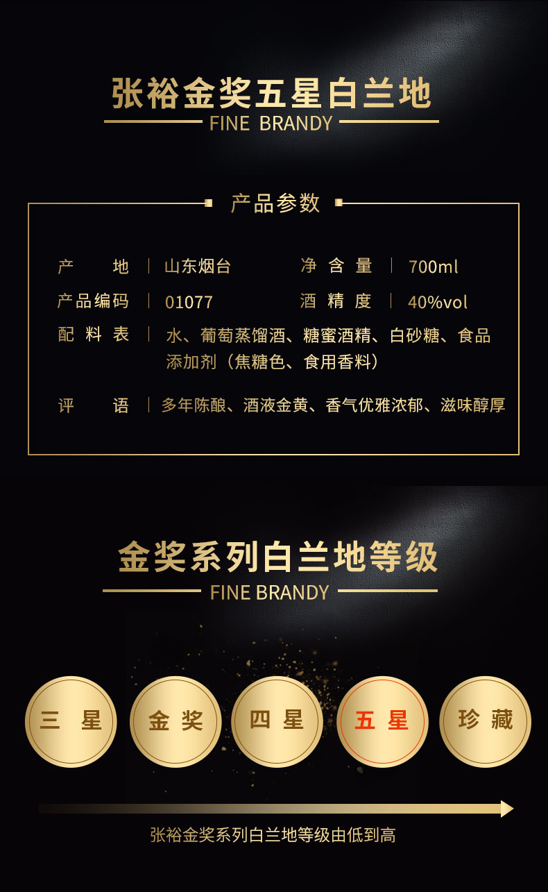 张裕五星金奖白兰地 700ml*1瓶