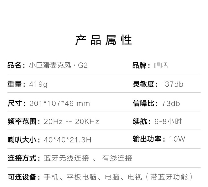 【好物】唱吧小巨蛋麦克风·G2【赠唱吧季度会员】 | 客厅秒变KTV,声音动听如原唱【下单5天发货】