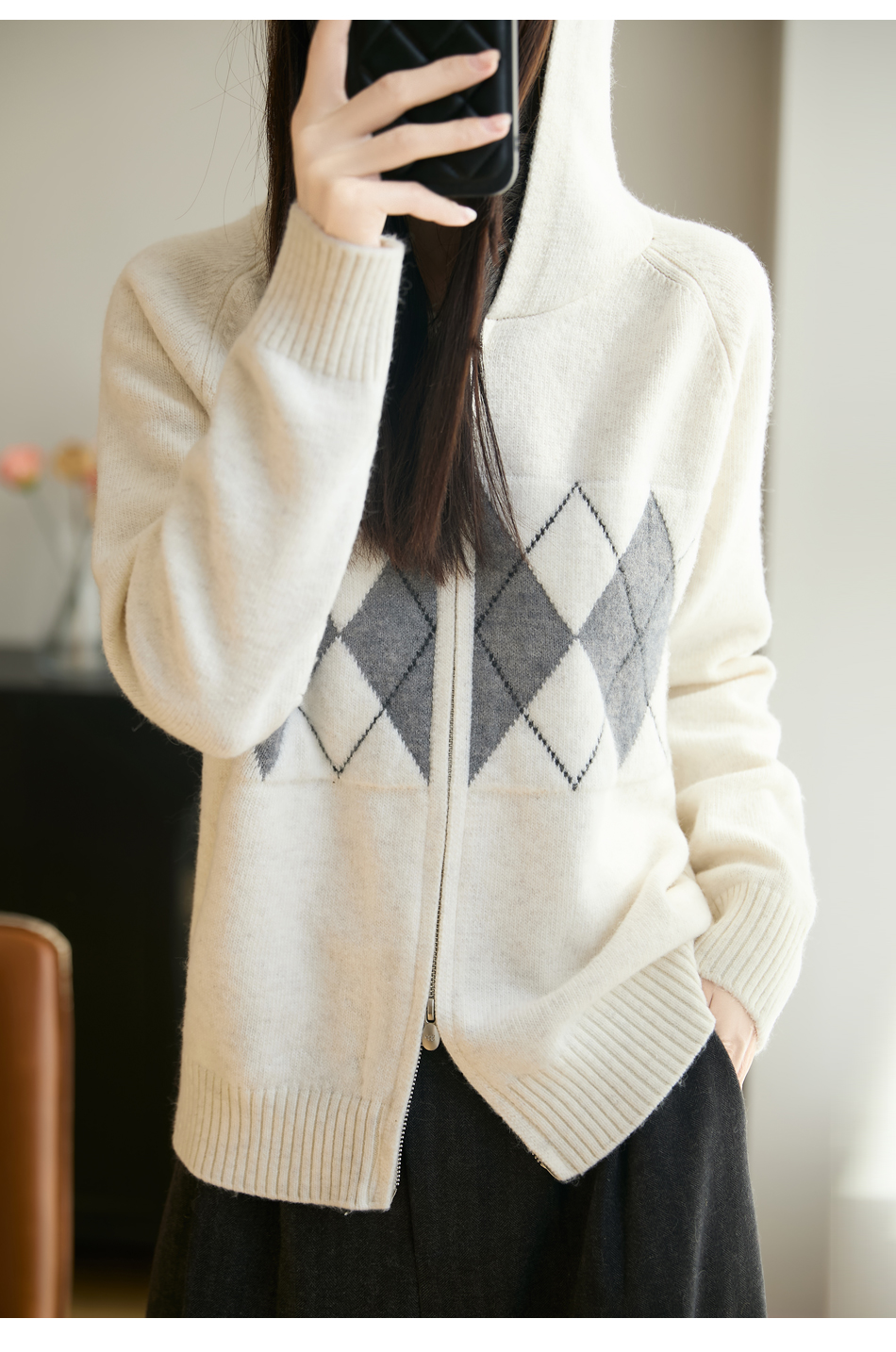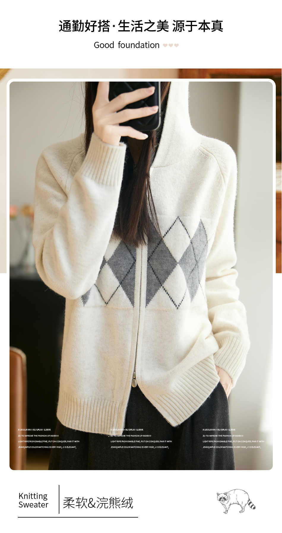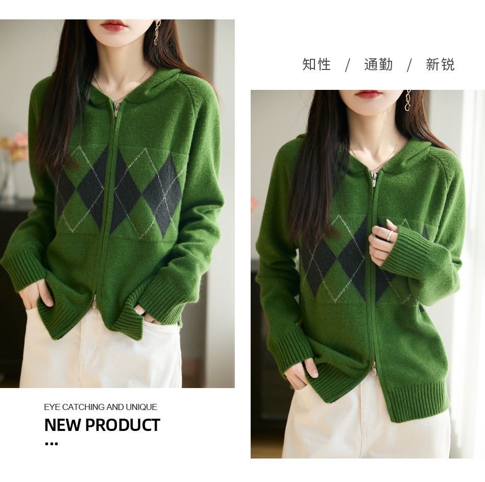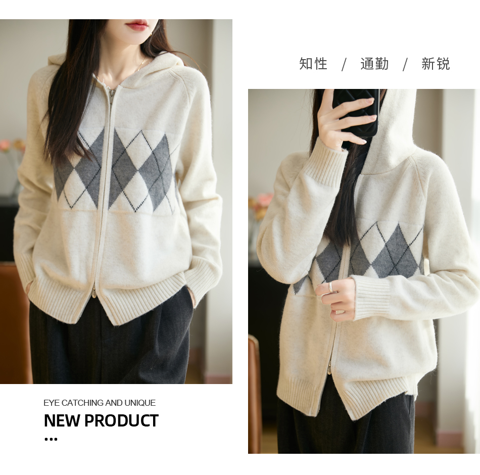 纤束马浣熊绒菱形格连帽开衫NG-2168 | 传递出复古文艺的英伦气息,是时尚界的永恒经典