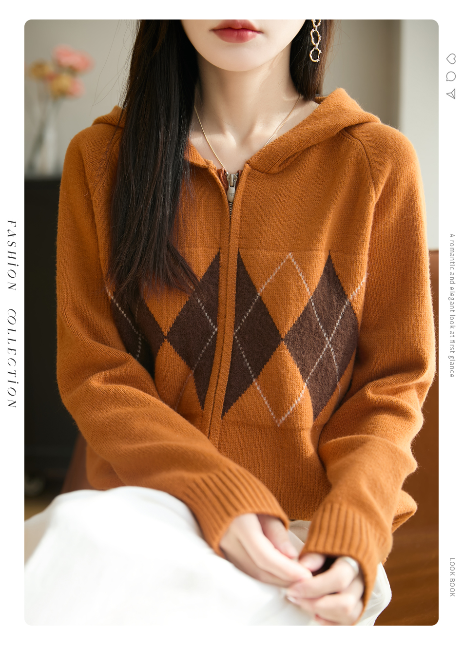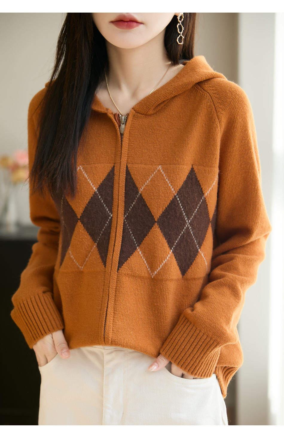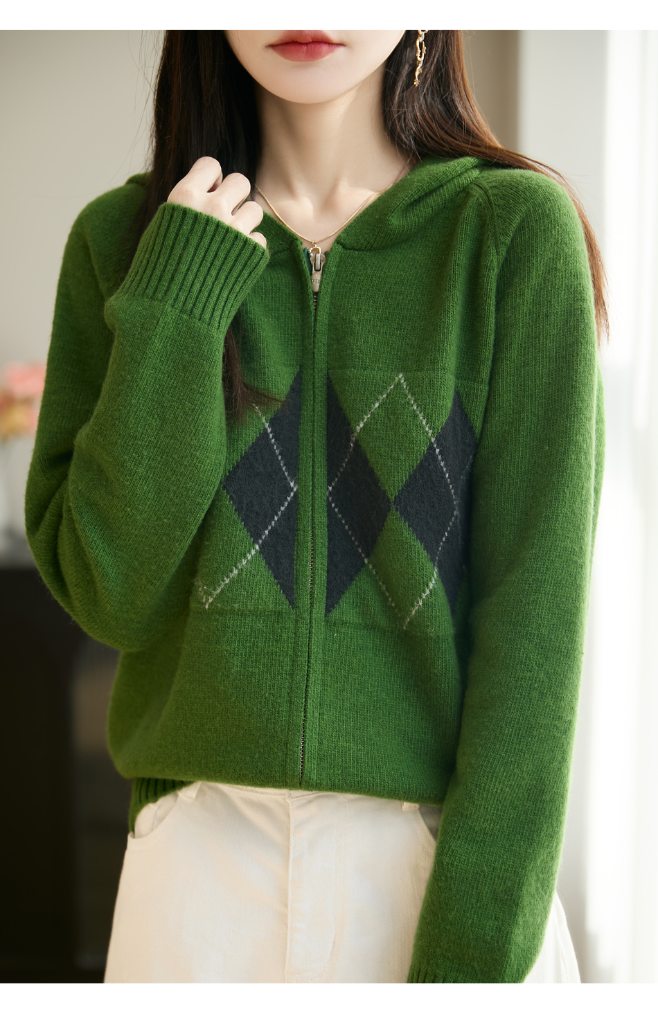 纤束马浣熊绒菱形格连帽开衫NG-2168 | 传递出复古文艺的英伦气息,是时尚界的永恒经典