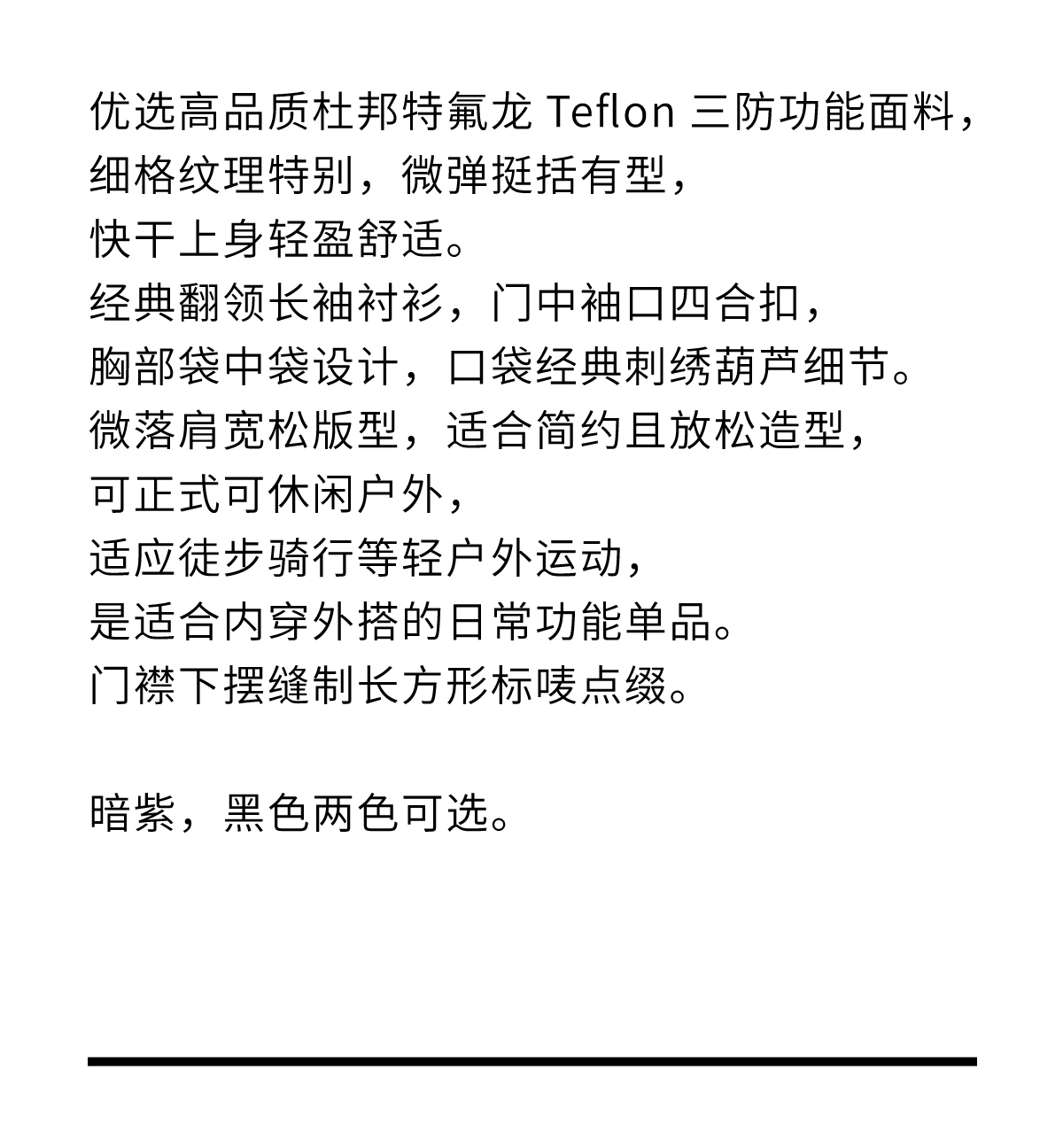 吃茶去chichaqu25速干特氟龙三防户外运动轻量长袖衬衫徒步骑行