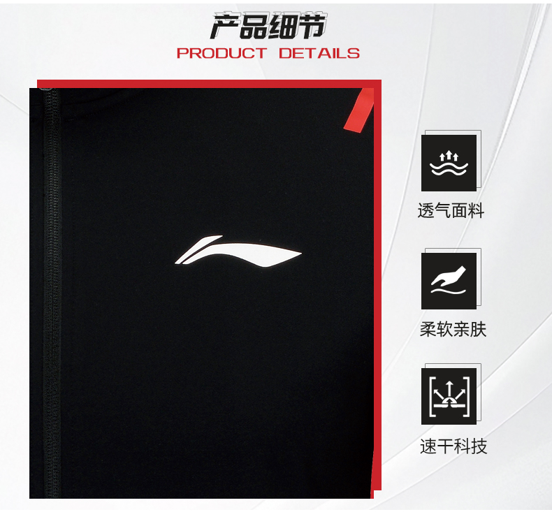 李宁羽毛球服开衫无帽运动卫衣AWDW257羽毛球服长袖