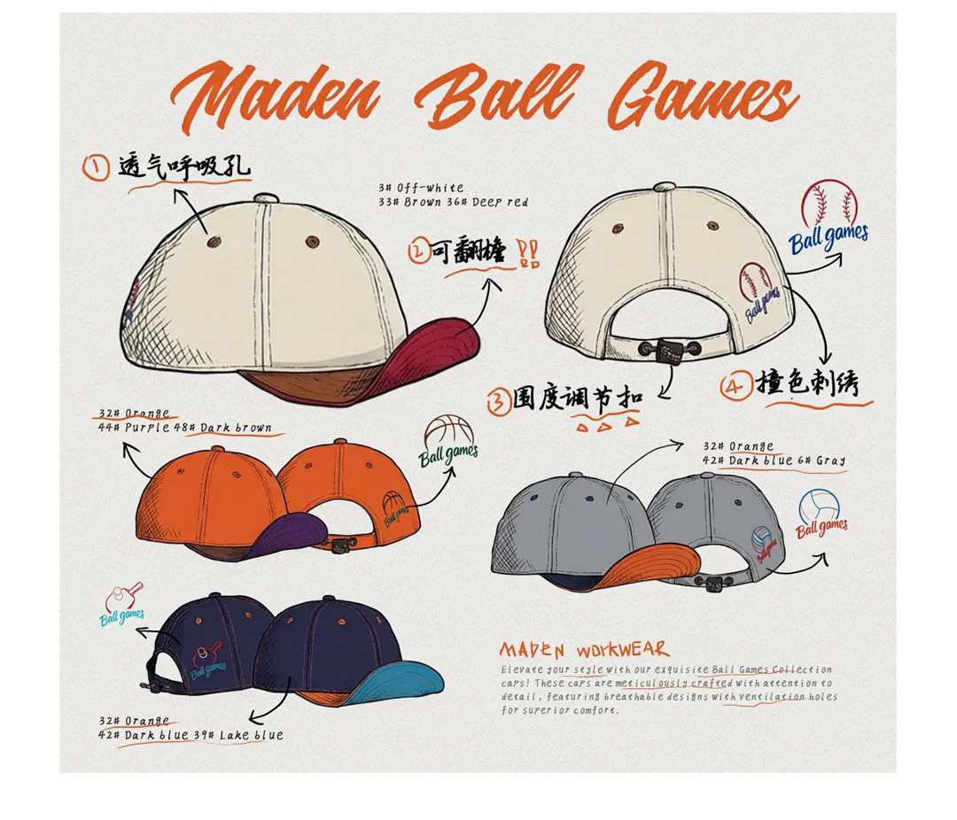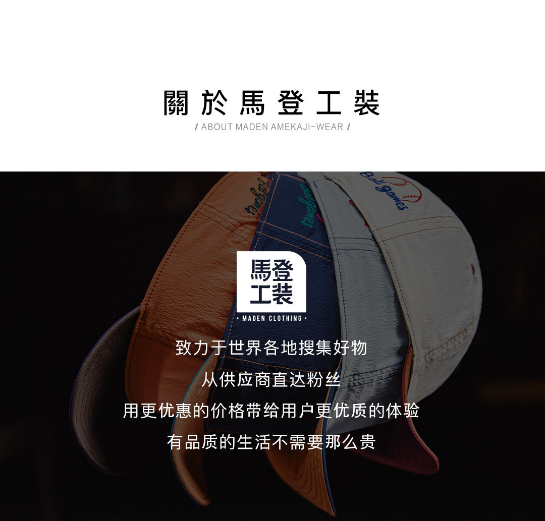 马登工装美式棒球帽跑步遮阳复古户外透气通勤短檐鸭舌帽子男款夏