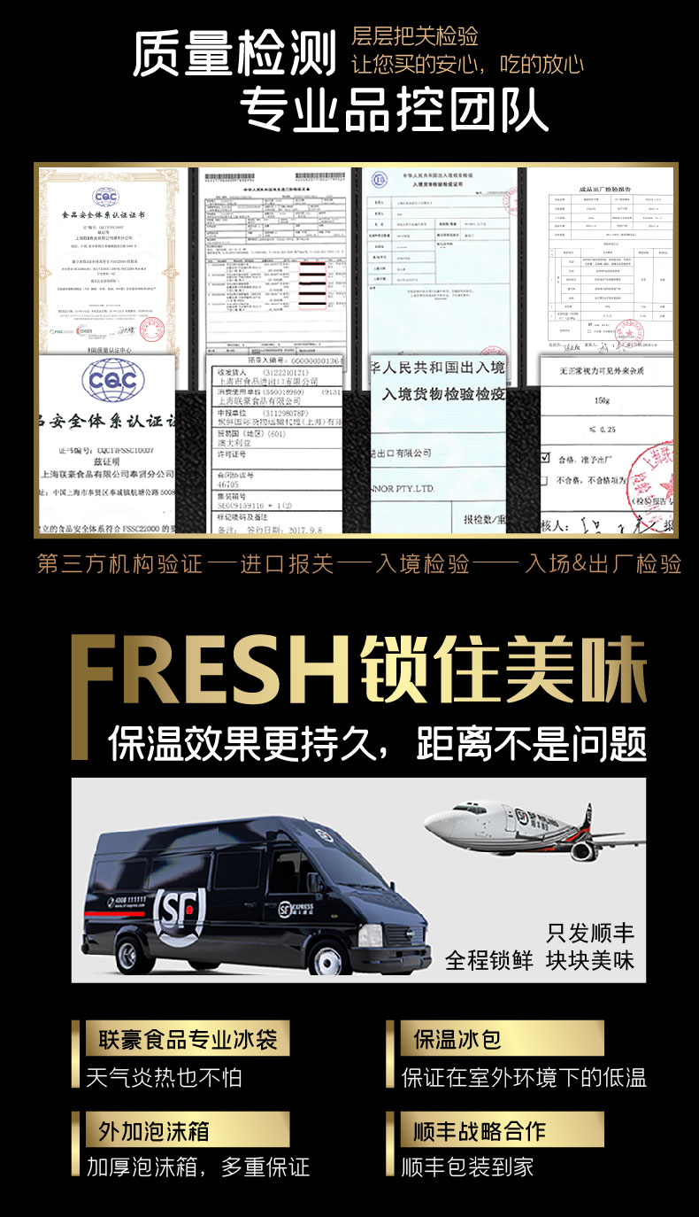 原切西冷牛排500g*1;澳洲原切上脑牛排500g*1;原切眼肉牛排500g*1