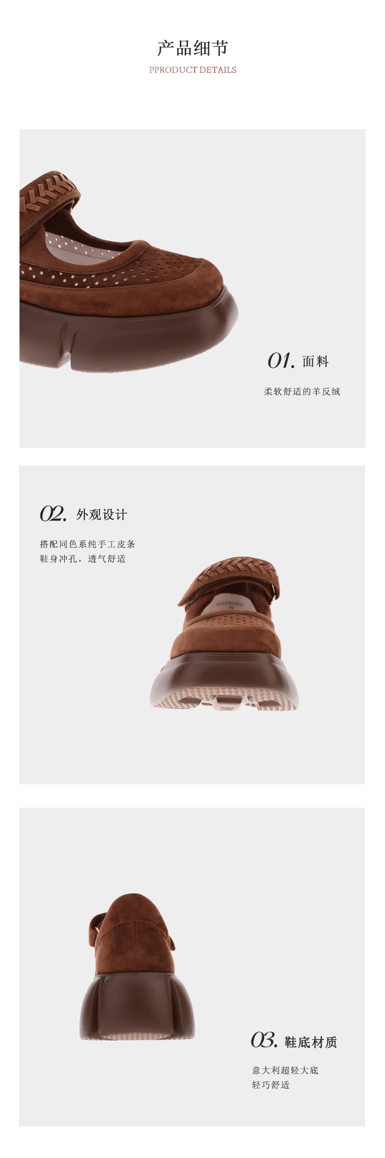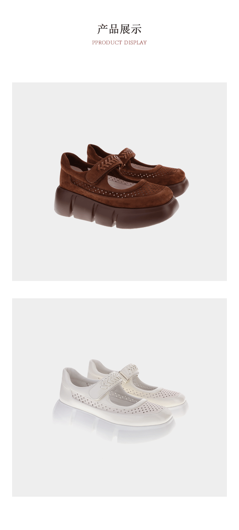 sheme皮料拼接手工皮条点缀镂空鞋身透气舒适时尚厚底玛丽珍女鞋可定制