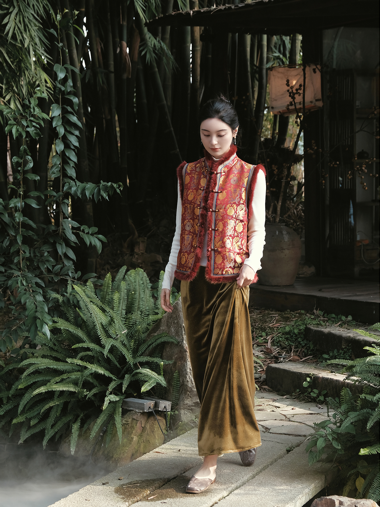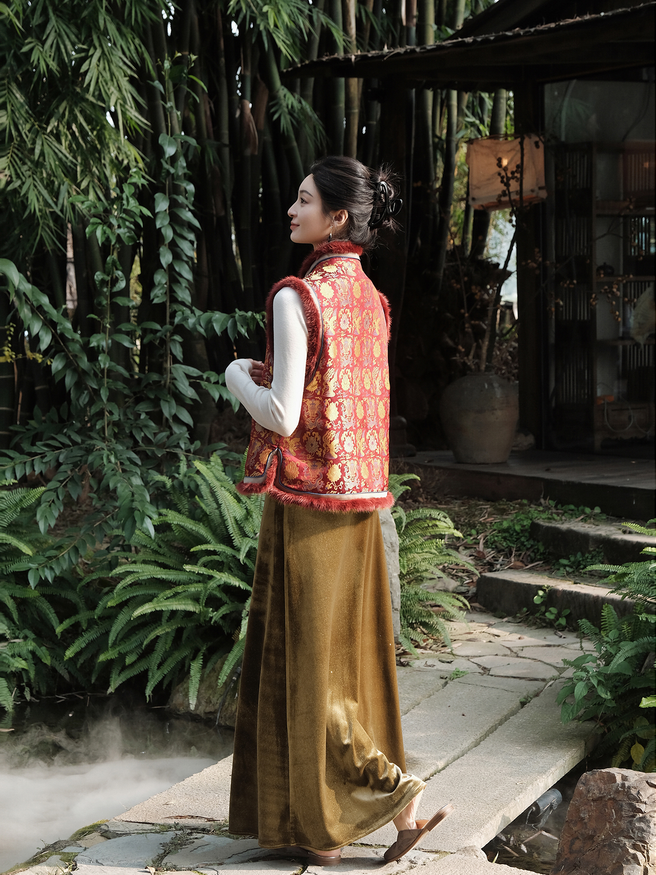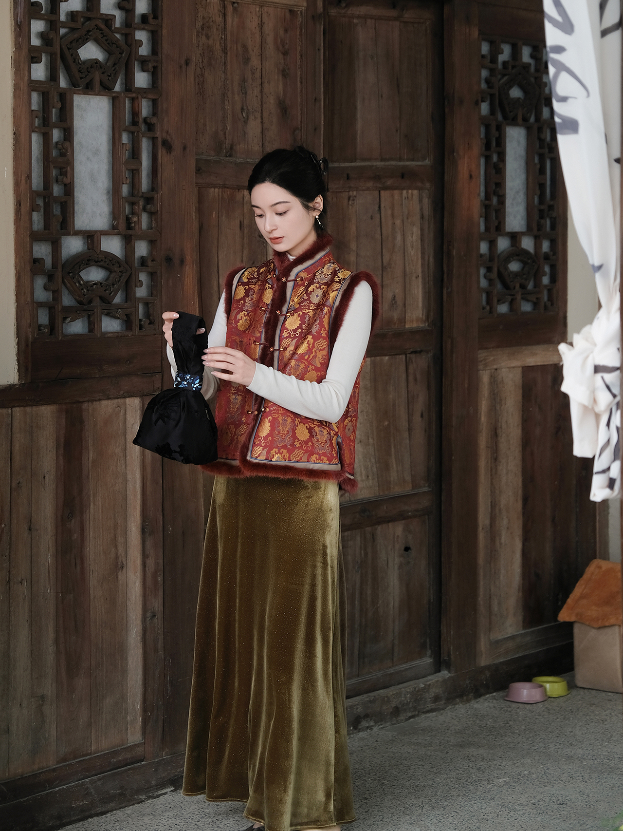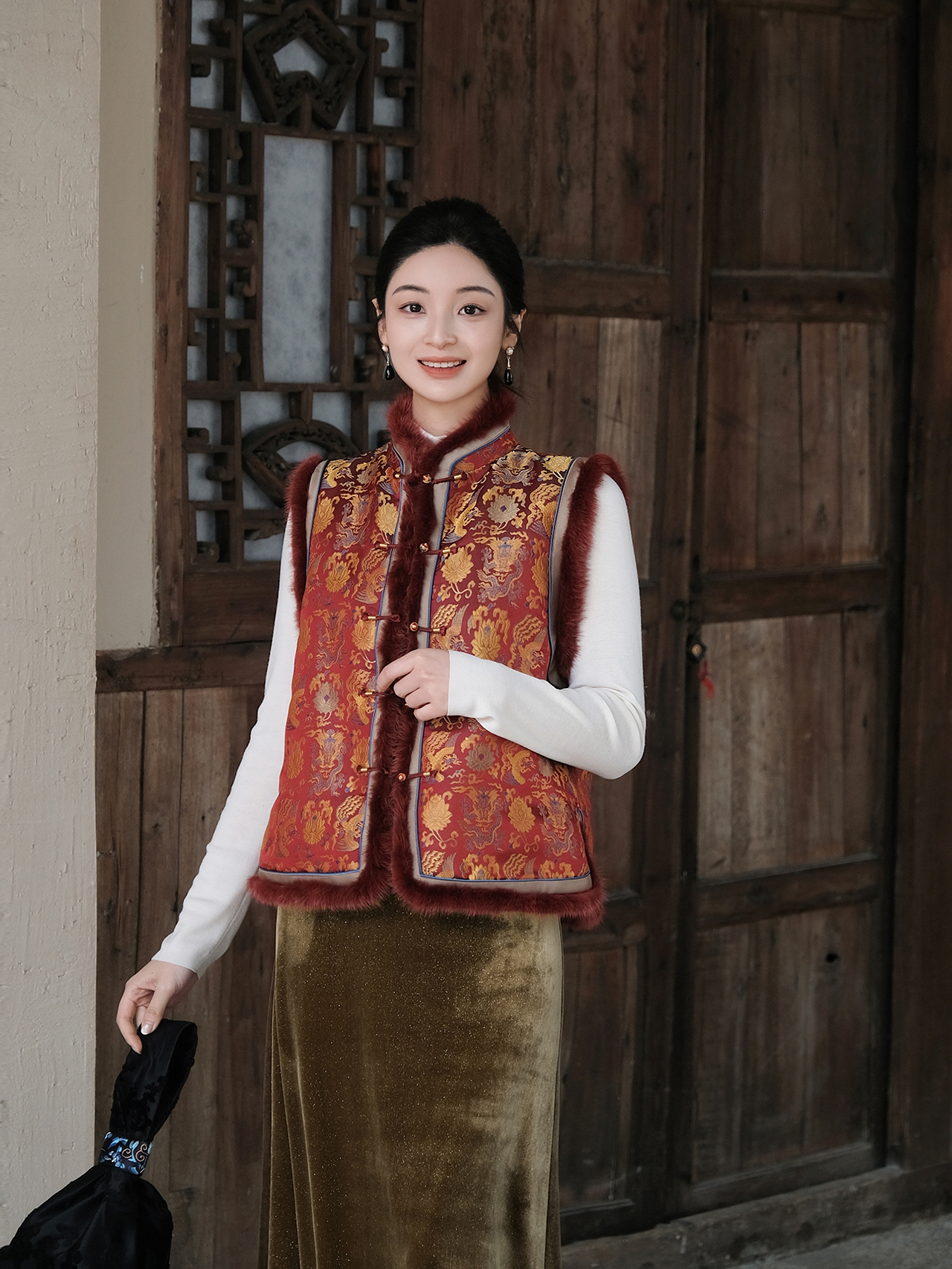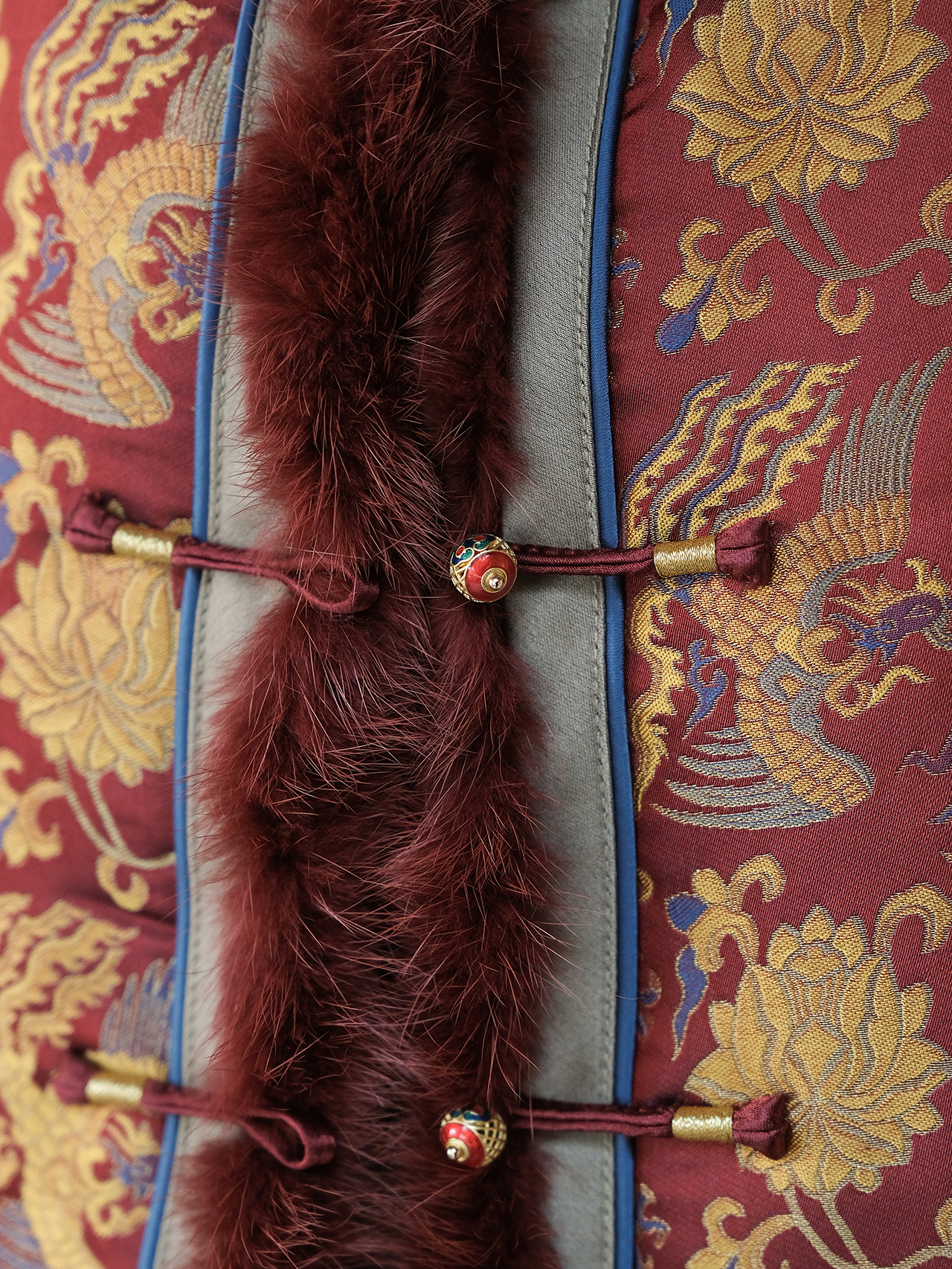 盛唐婧 | 新中式宋锦龙凤穿莲纹夹棉马甲