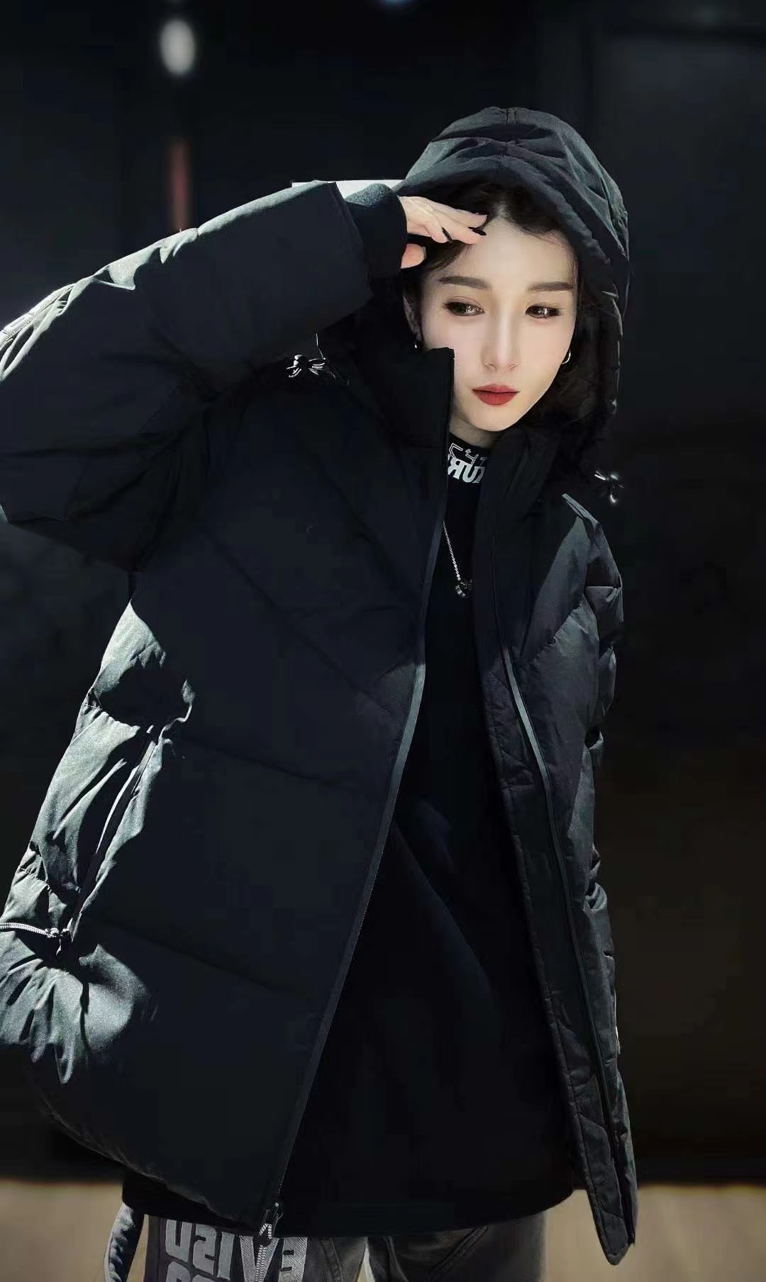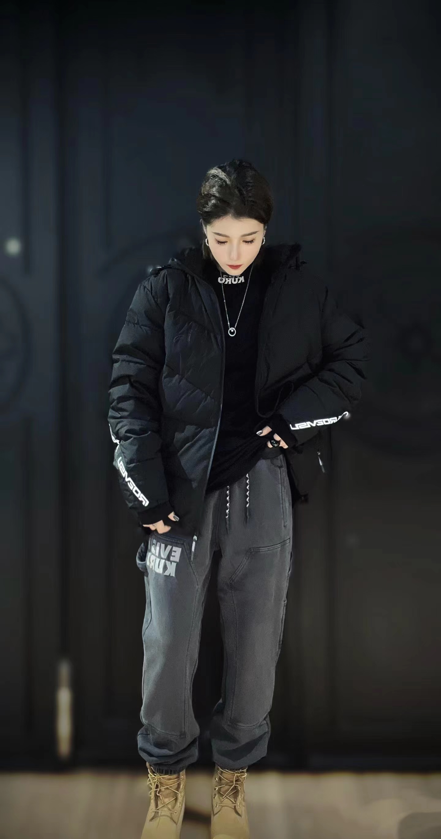 采用常规版型,立领设计配合袖口橡筋束脚,提供了出色的保暖性能。