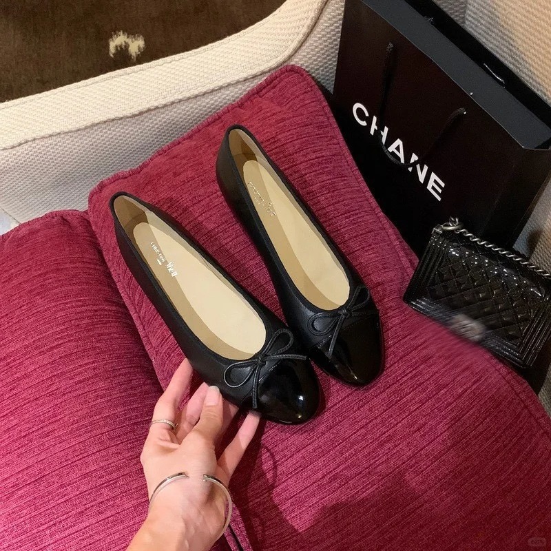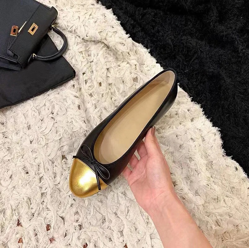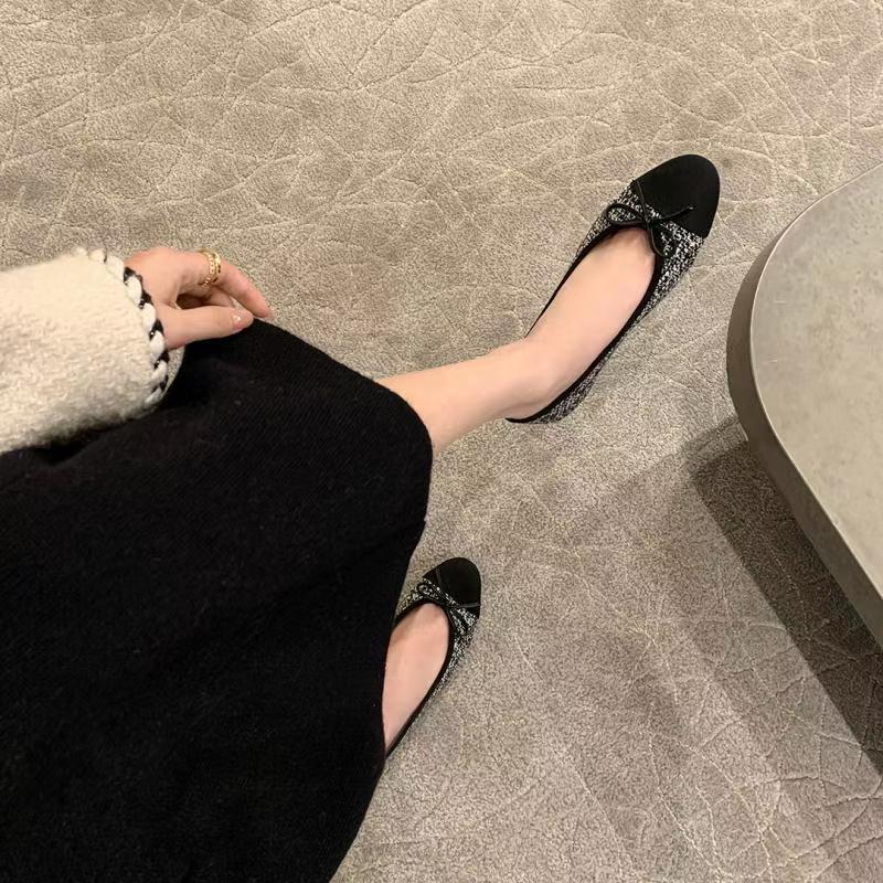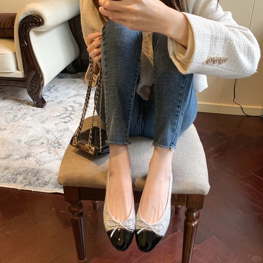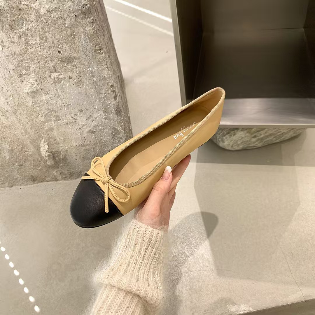 复古小羊皮(内衬含有羊皮)平底鞋--小香风浅口湖蝶结