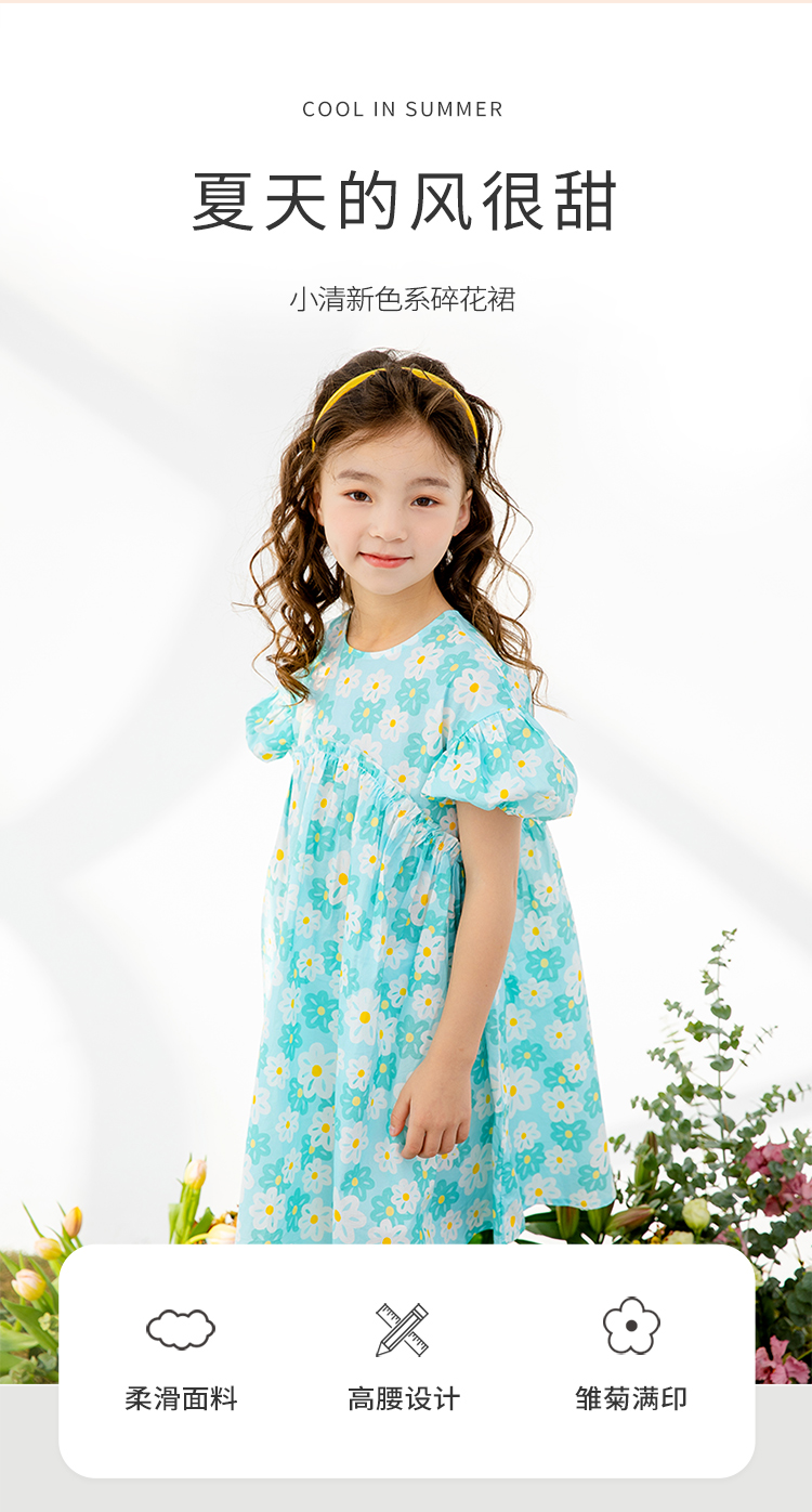 贝贝怡女童连衣裙女孩新款童装夏季薄公主裙女宝宝碎花裙子