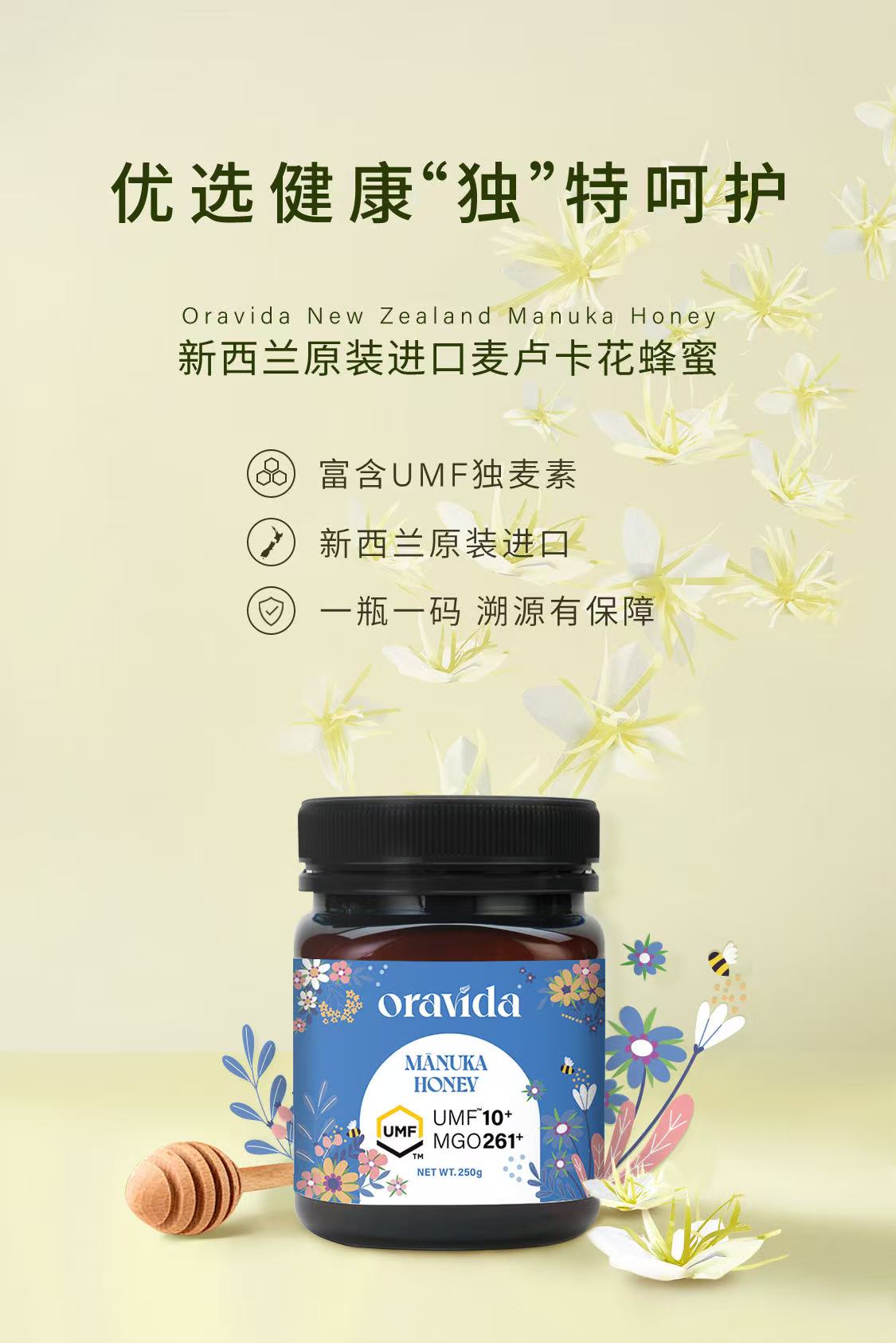 【女神节】UMF10+新西兰麦卢卡蜂蜜250g原装进口+赠800ml含气矿泉水1瓶