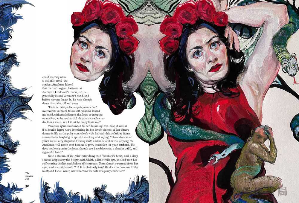 除了提供全新的译本,齐佩斯还介绍了这个项目,并揭示了霍夫曼一生的个人创伤如何塑造了他的写作风格。弗兰克以细腻的树胶水彩和粉笔素描,通过全页插图和边饰,生动展现了霍夫曼笔下的世界。她以女性主义的视角,描绘了转变、勇气、爱情、欲望和背叛等关键场景,聚焦于坚强、自我意识强烈的女性角色。小说家凯伦·罗素在前言中深入探讨了这些故事对她个人文学生涯的影响,以及她如今如何效仿霍夫曼。这本《受伤的讲故事者》将把霍夫曼这部永恒的作品介绍给新一代的读者。