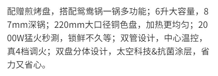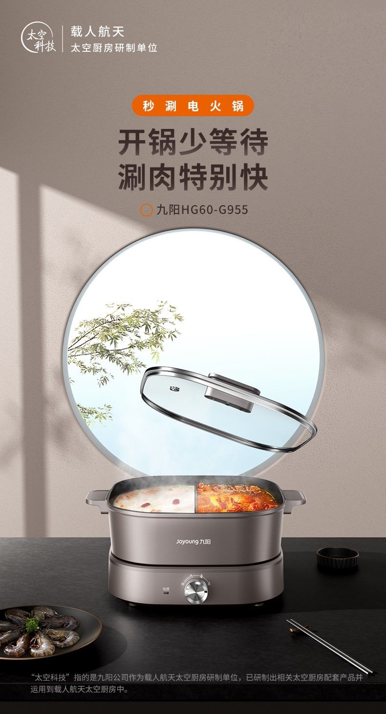 【秒涮火锅】Joyoung九阳HG60-G955太空科技系列电火锅家用鸳鸯锅