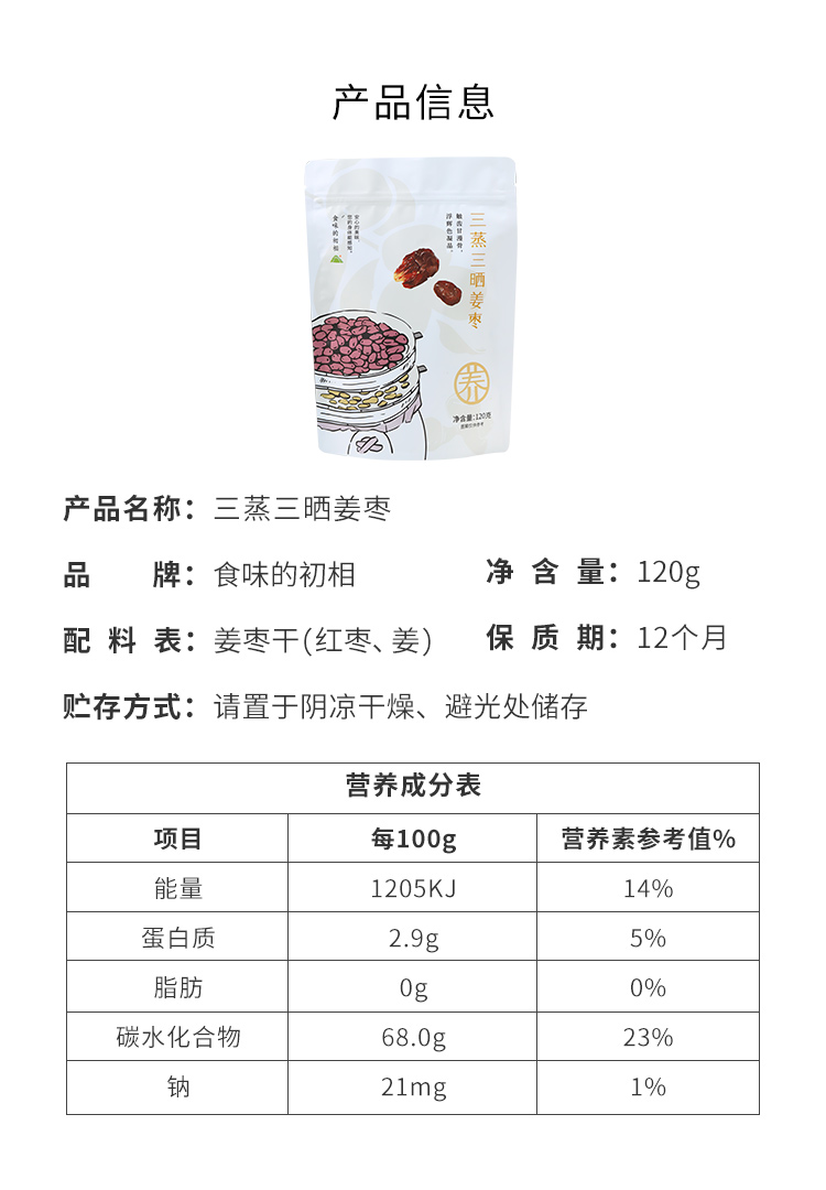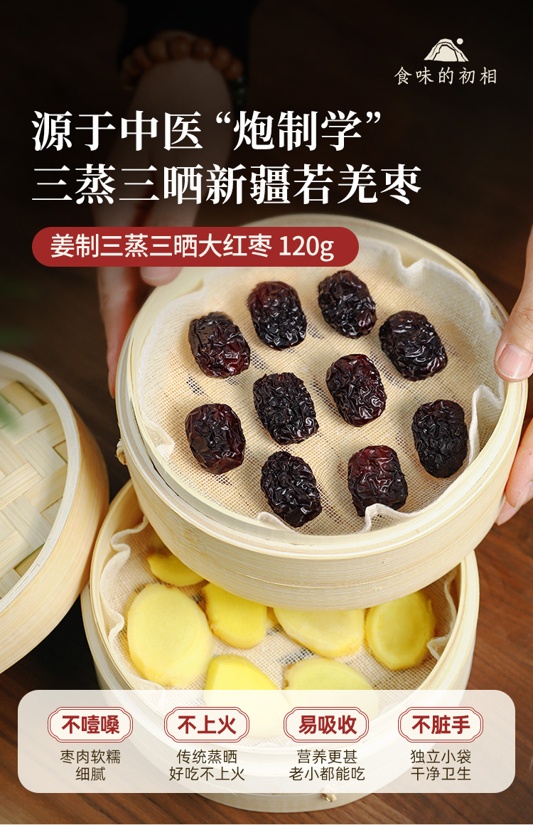 食味的初相*姜制三蒸三晒大红枣120g*2袋/3袋/5袋 新疆若羌大红枣 内含独立小包装