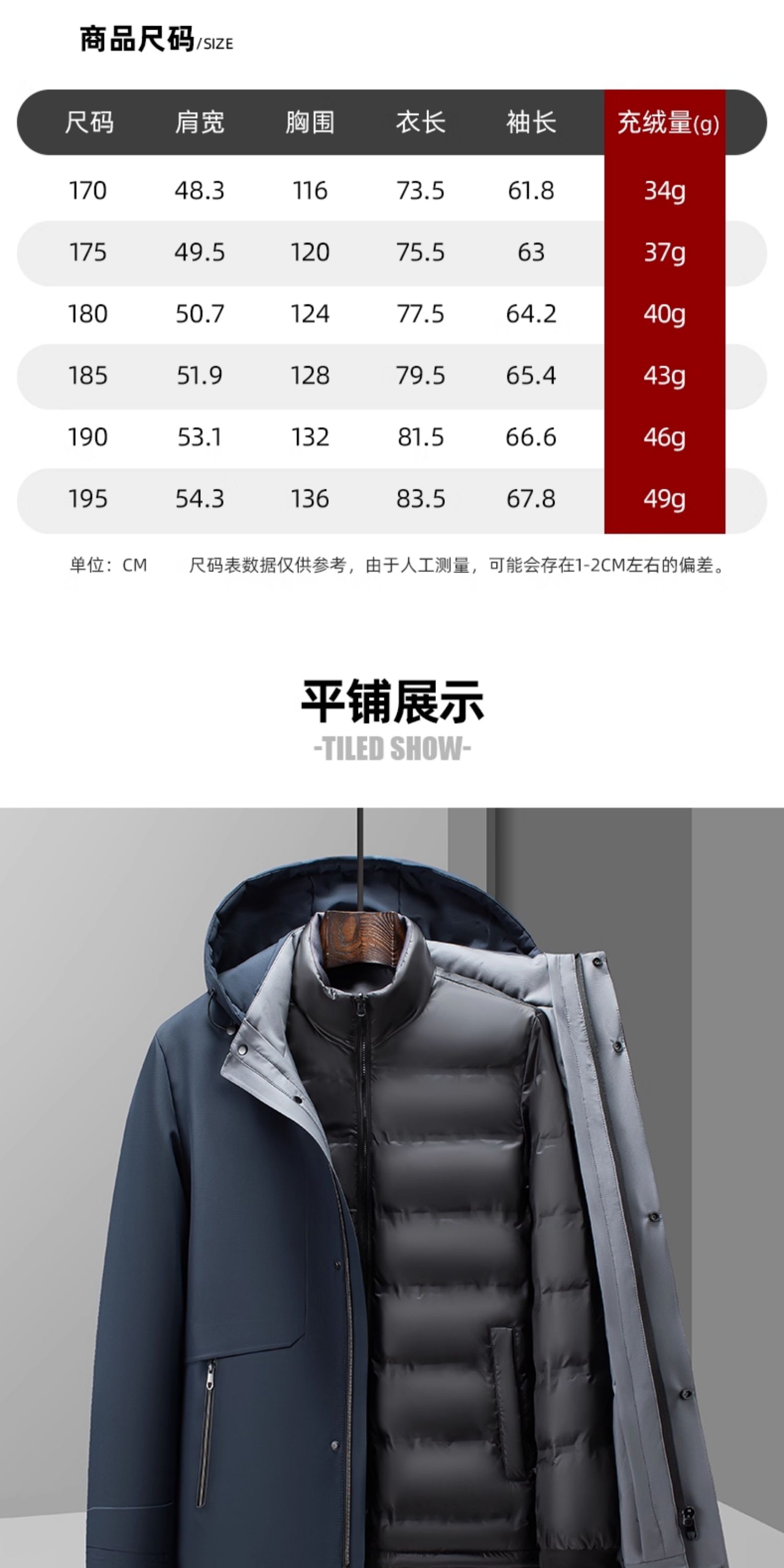 填充物:鹅绒(绒子含量90%)