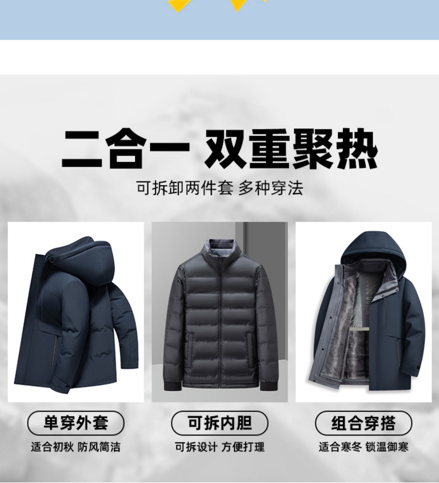 【罗蒙ROMON 奢暖鹅绒服】一衣五穿 二合一 双重具热 多种穿法