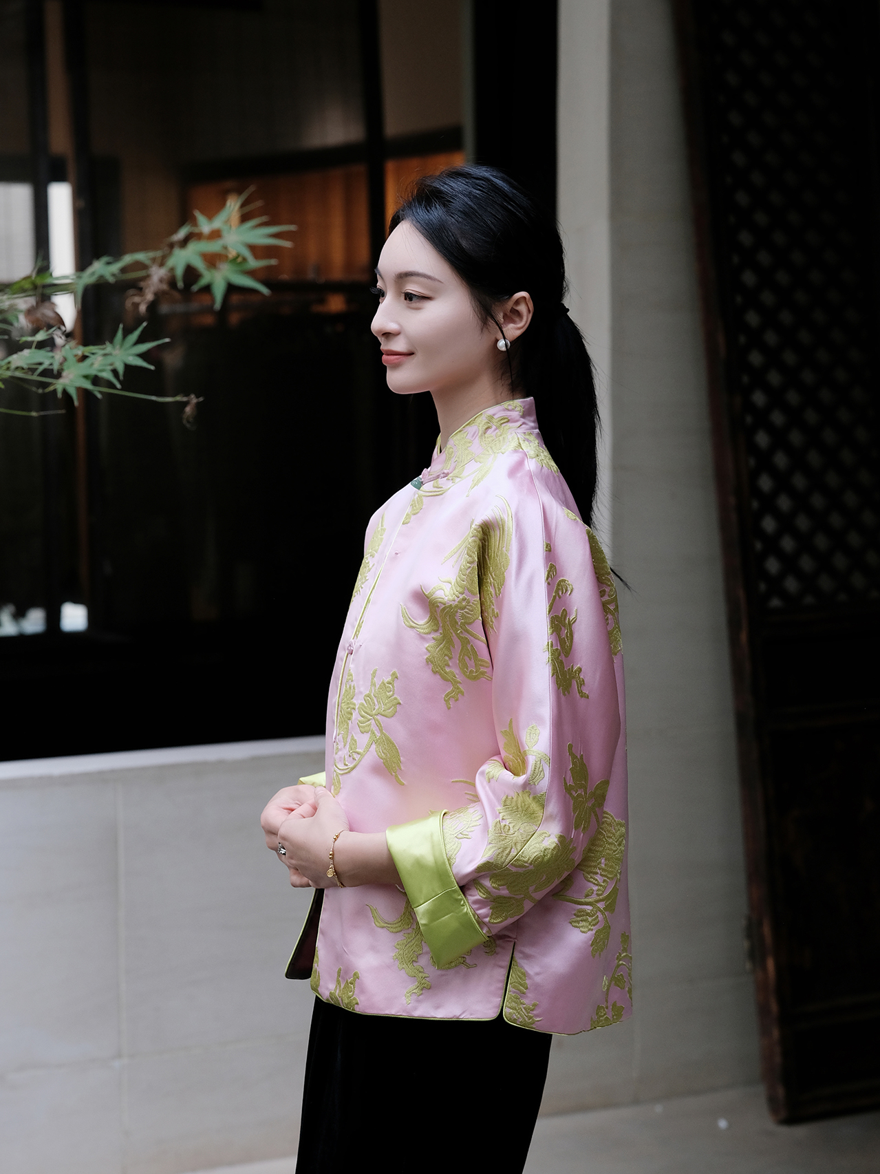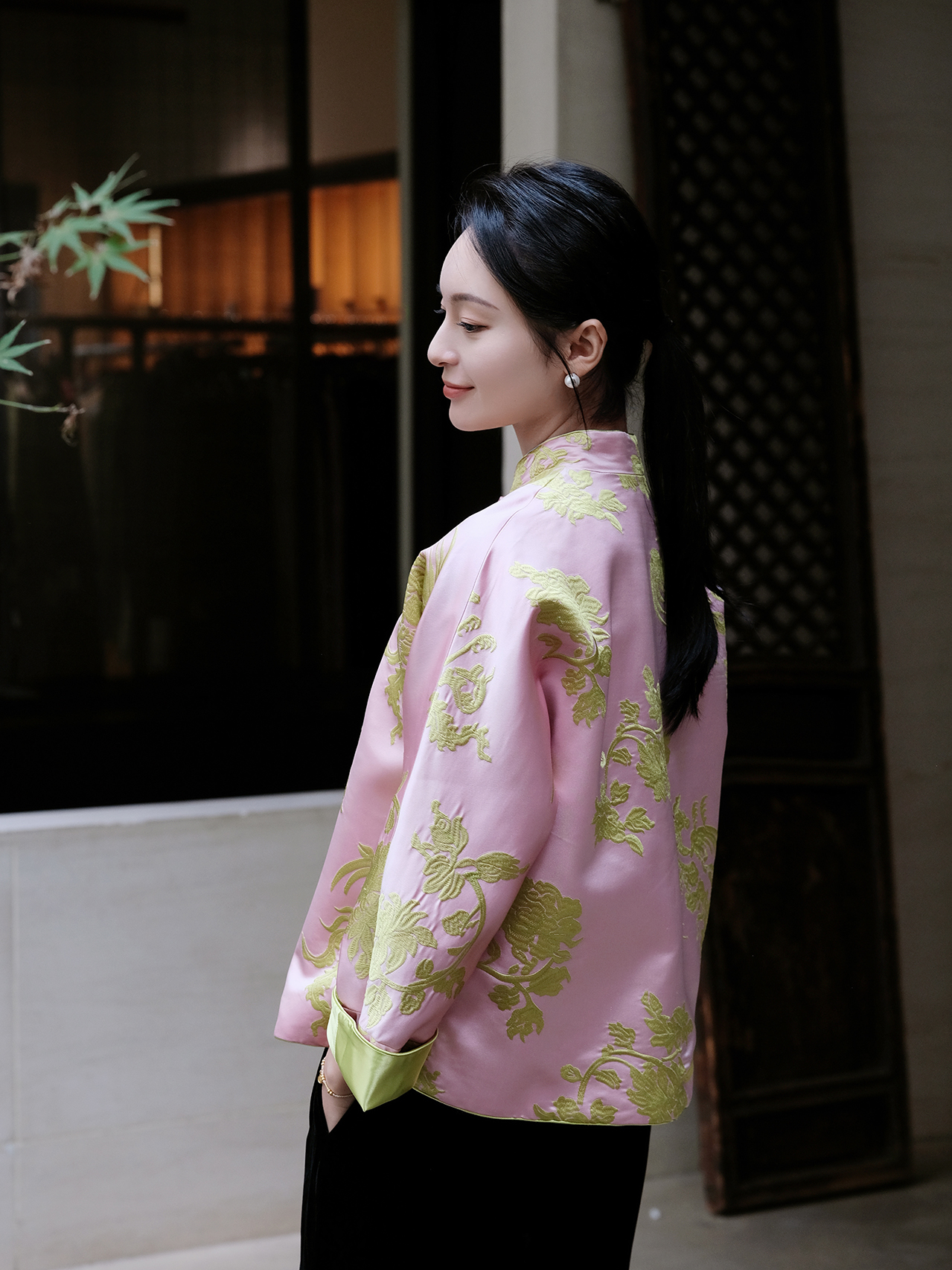 盛唐牡丹 |真丝提花梅兰竹菊外套/可正反两穿