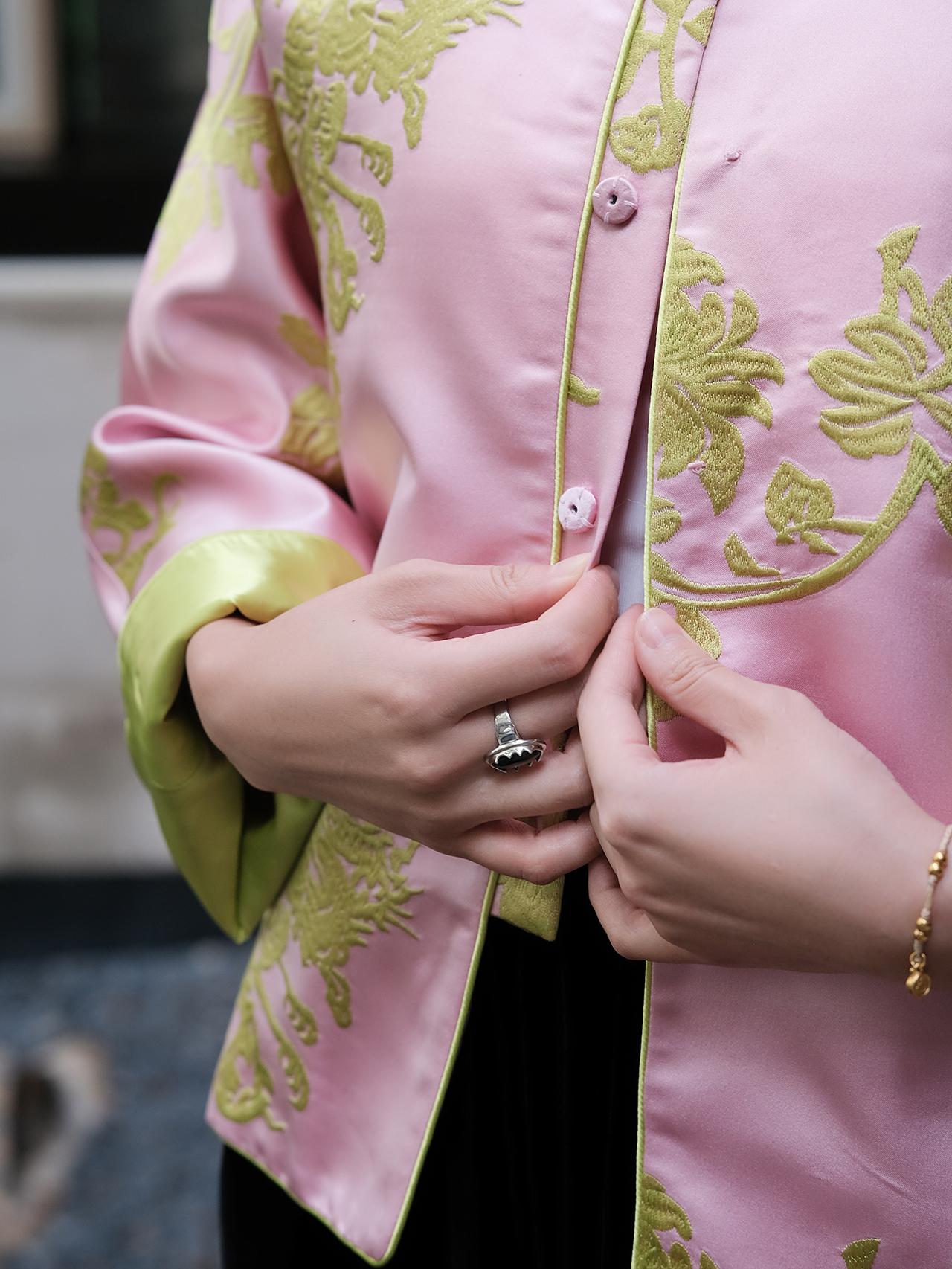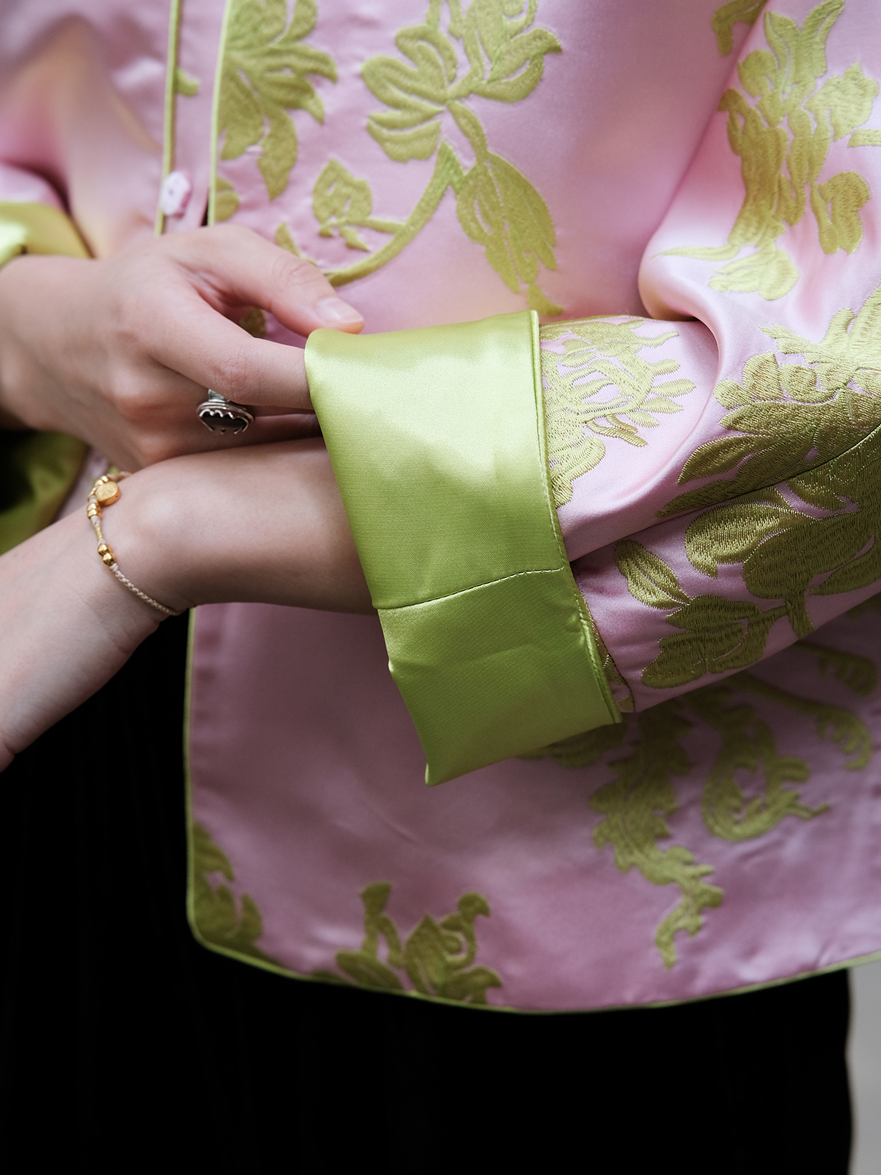 盛唐牡丹 |花锦缎喜鹊纹双面穿马甲